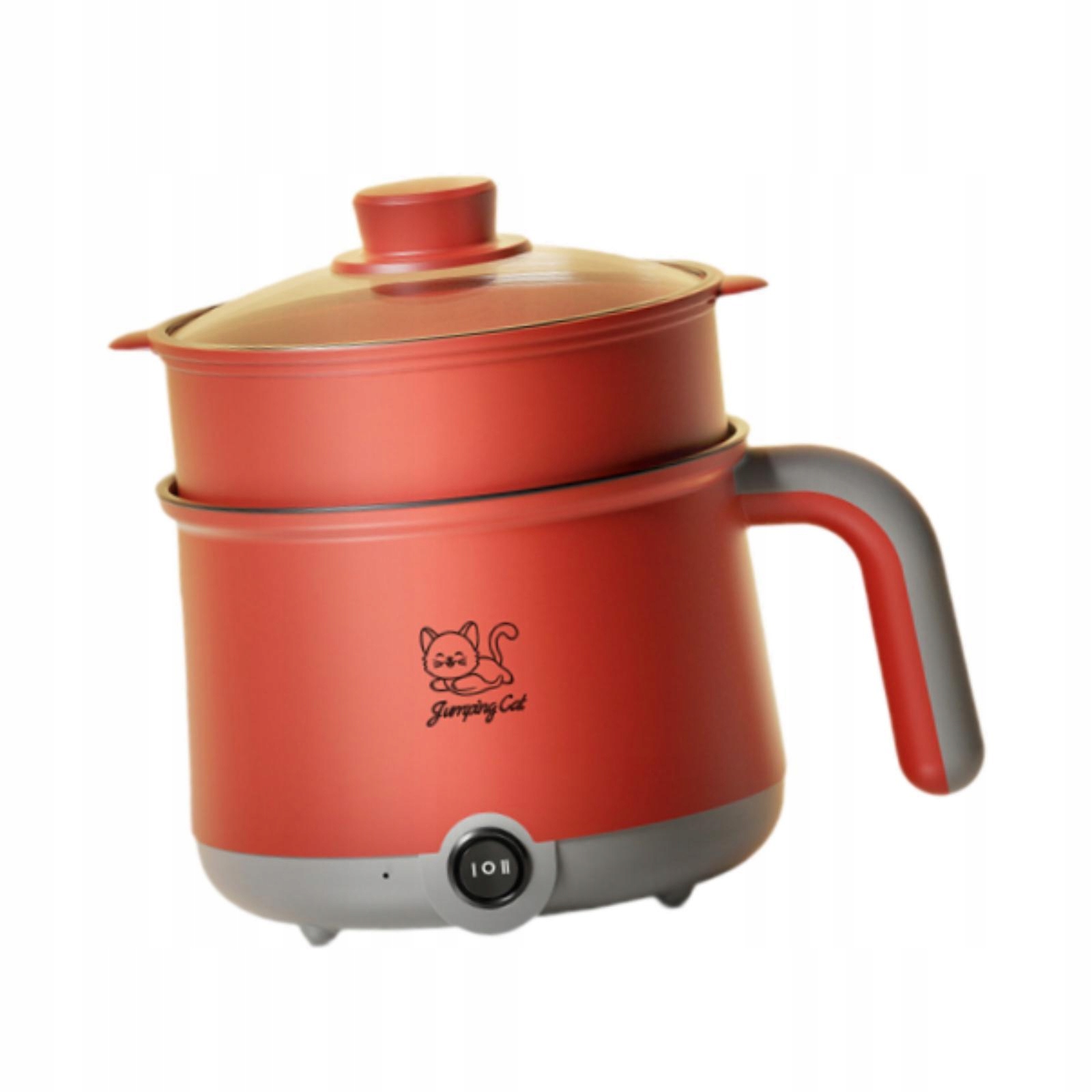 Электрическая кастрюля с пароваркой, многофункциональная лапша с антипригарным покрытием, серо-красный