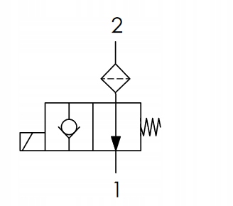 Клапан нормально открыт с одной стороны, в бестоковом режиме поток свободен от 1 до 2 и заблокирован от 2 до 1. После подачи тока поток свободен с одной стороны от 2 до 1.