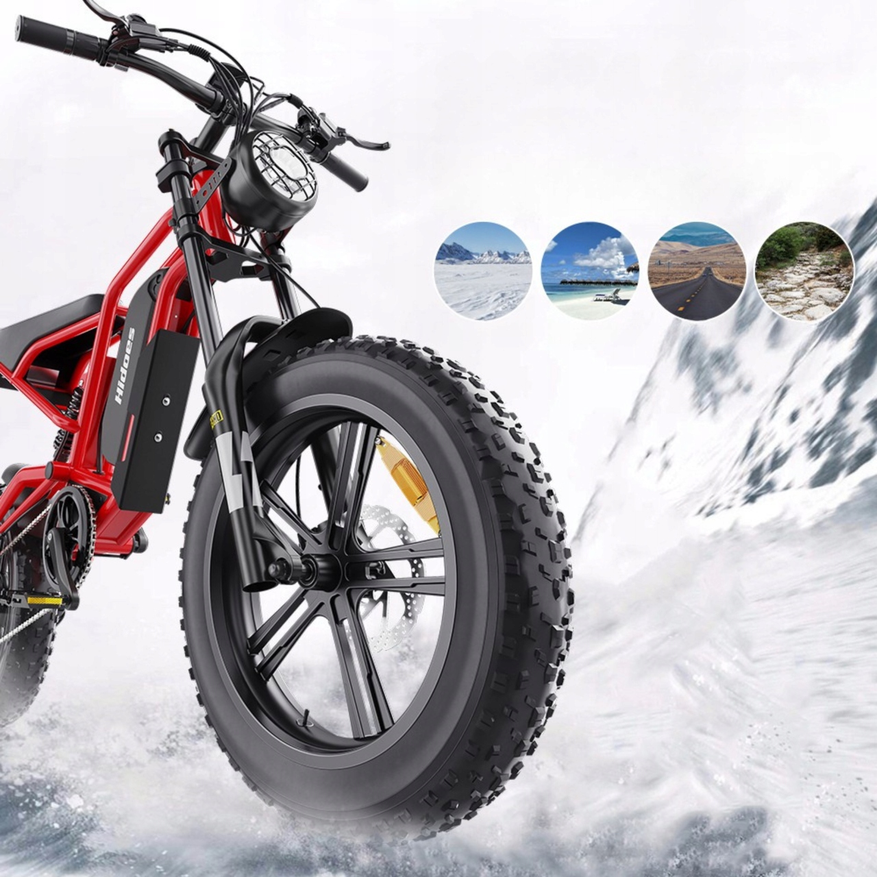 hidoes b6 был оснащен Fatbike 20 "x 4,0" , которые обеспечивают отличную адгезию и комфорт вождения во всех условиях: