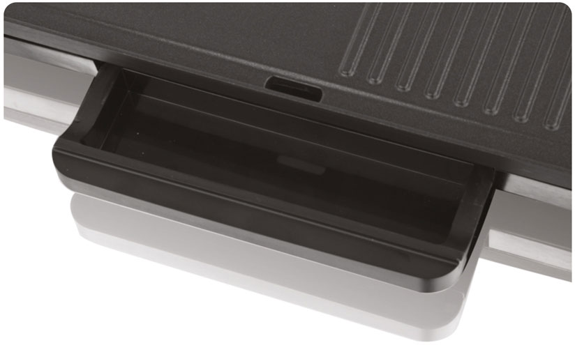 Руфленая поверхность тарелок означает, что выпеченные блюда меньше контактируют с скопившимся жиром. Он выгружается в специальный выдвижной лоток. Такое решение означает полезные и легкие блюда, а гриль легко содержать в чистоте.