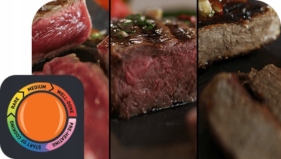 Идеальные результаты приготовления на гриле каждый раз: от легкой до средней и полной прожарки: индикатор показывает степень готовности. Он издает звук на каждом этапе, чтобы вы знали, когда ваше блюдо будет приготовлено так, как вам нравится!