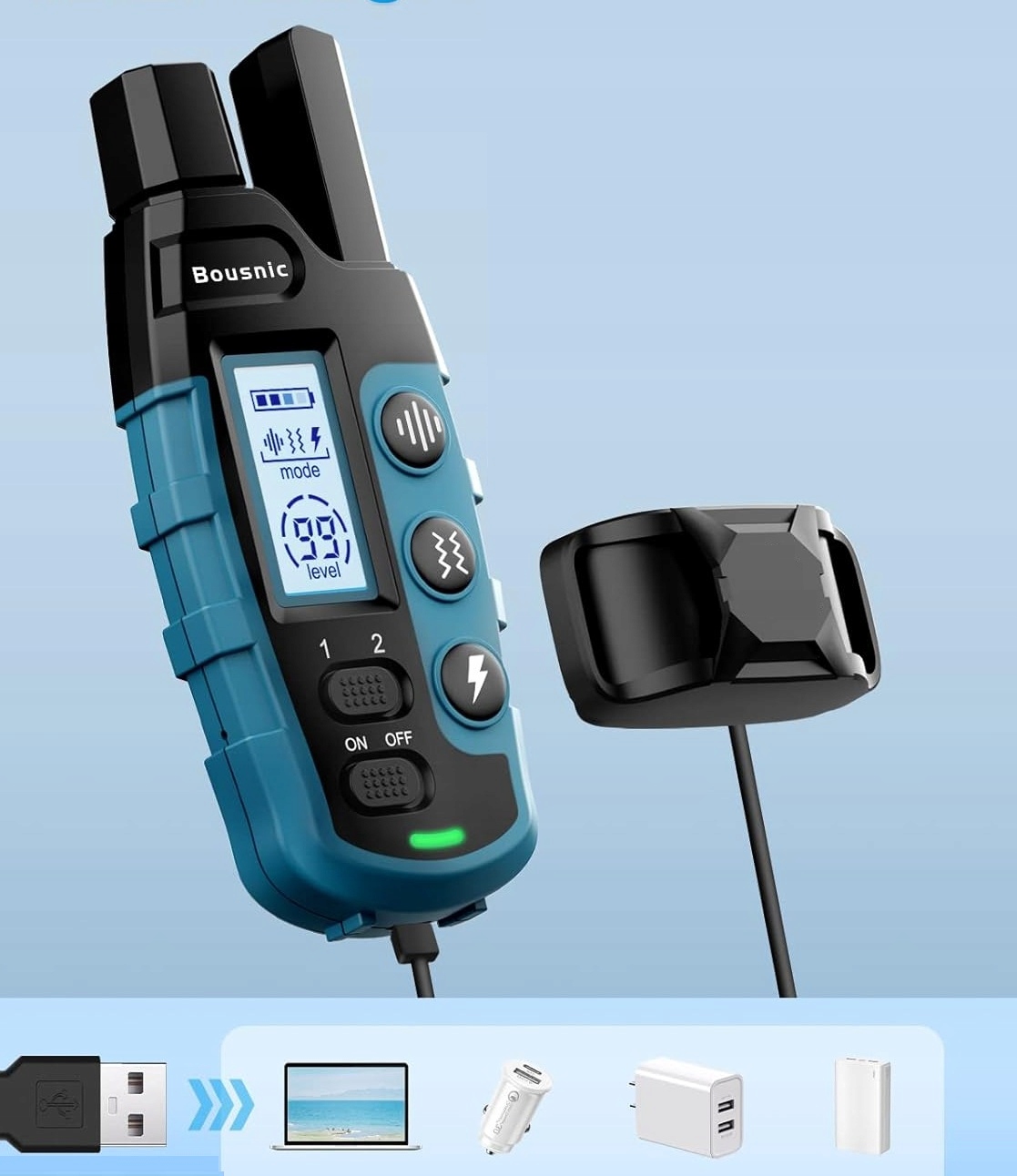 является универсальным инструментом для владельцев собак, которые хотят эффективно и в то же время контролируются, исправить нежелательное поведение своих домашних животных. Оснащен 3 режимами рабочих - звуковой, вибрирующий и электрический импульс - предлагает целых 99 уровней интенсивности, что позволяет адаптировать к характеру и размеру собаки. Благодаря водонепроницаемости IP67 и диапазону до 1000 метров, он отлично работает во время прогулок, тренировки в парке, на пляже или в лесу.