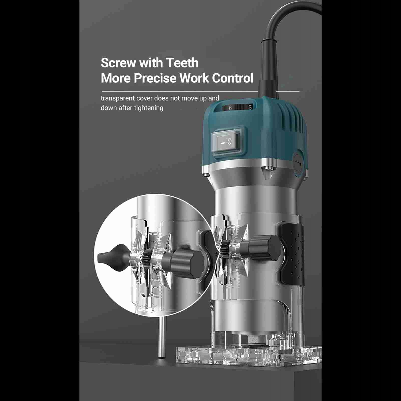 4. [Высокая точность] Прозрачное основание деревообрабатывающего фрезера обеспечивает четкий обзор кромки обрезки и просто в эксплуатации. Прозрачная конструкция основания обеспечивает точность и легко узнаваема при обработке.