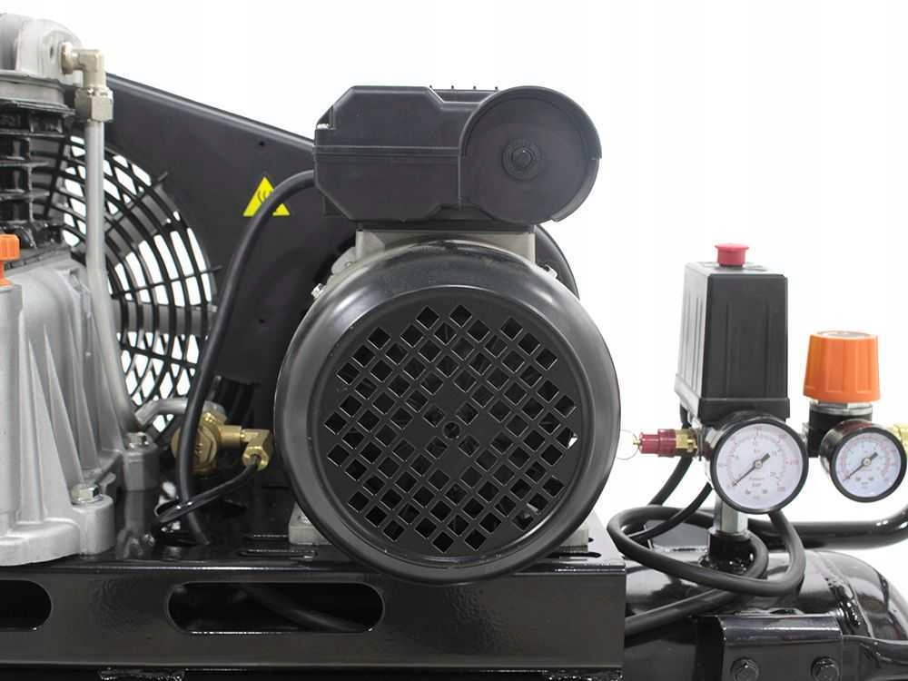 Низкое вращение обеспечивает длительный срок службы компрессора. Снижение скорости является результатом использования шкива с разными диаметрами на двигателе и блоке компрессора.