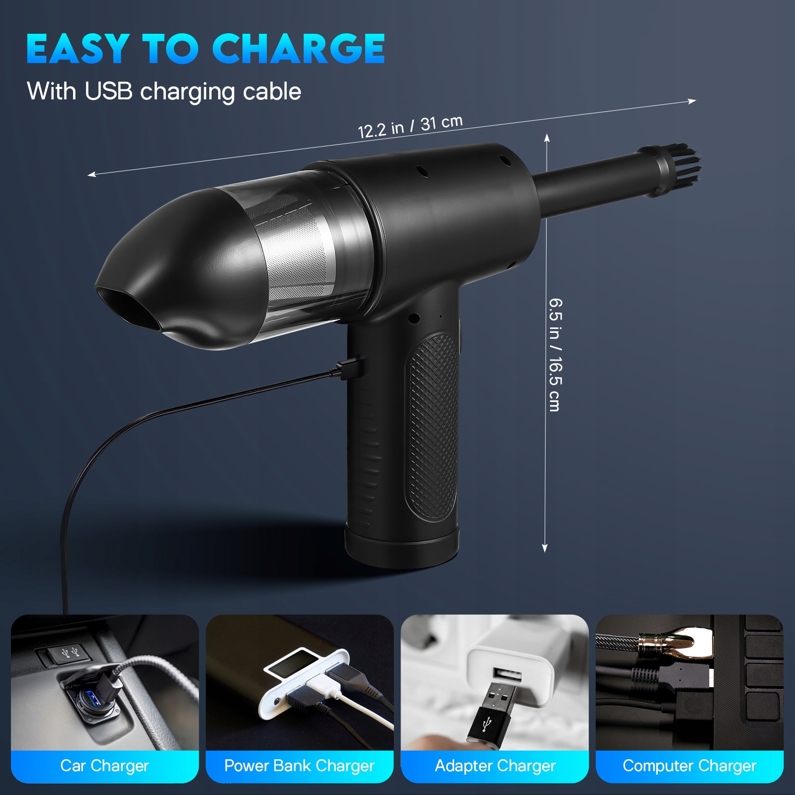 Используйте воздуходувку удобно и без проводов до 30 минут (в начале). Уведомлен о работе, заряжайте быстро с помощью разъема USB-TPC!