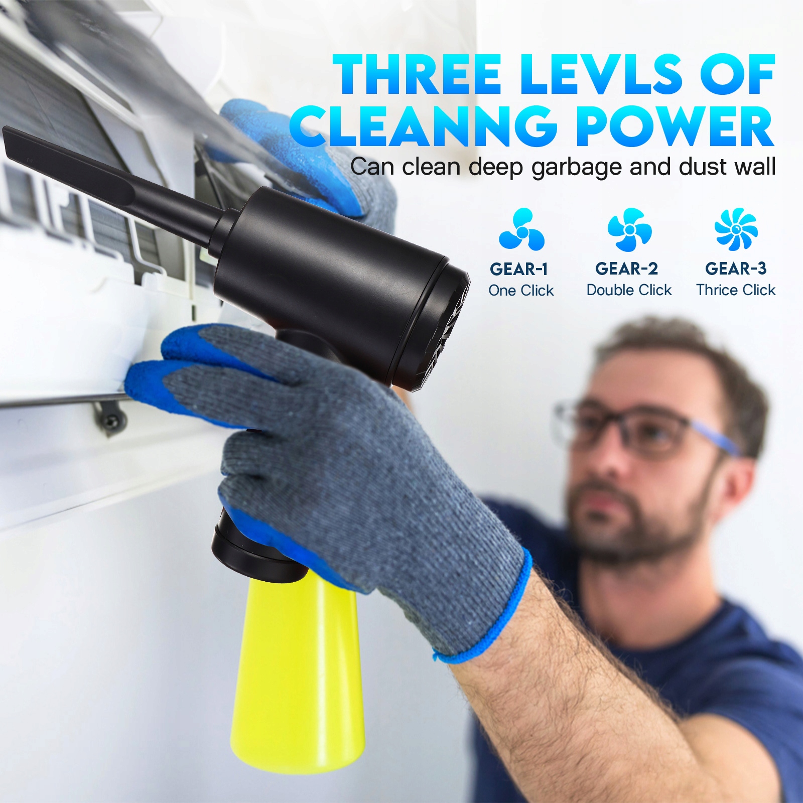 Чистка транспортных средств. Вентилятор виден при чистке салона автомобиля, удалении пыли из кондиционера, кузова и других видимых препятствий.