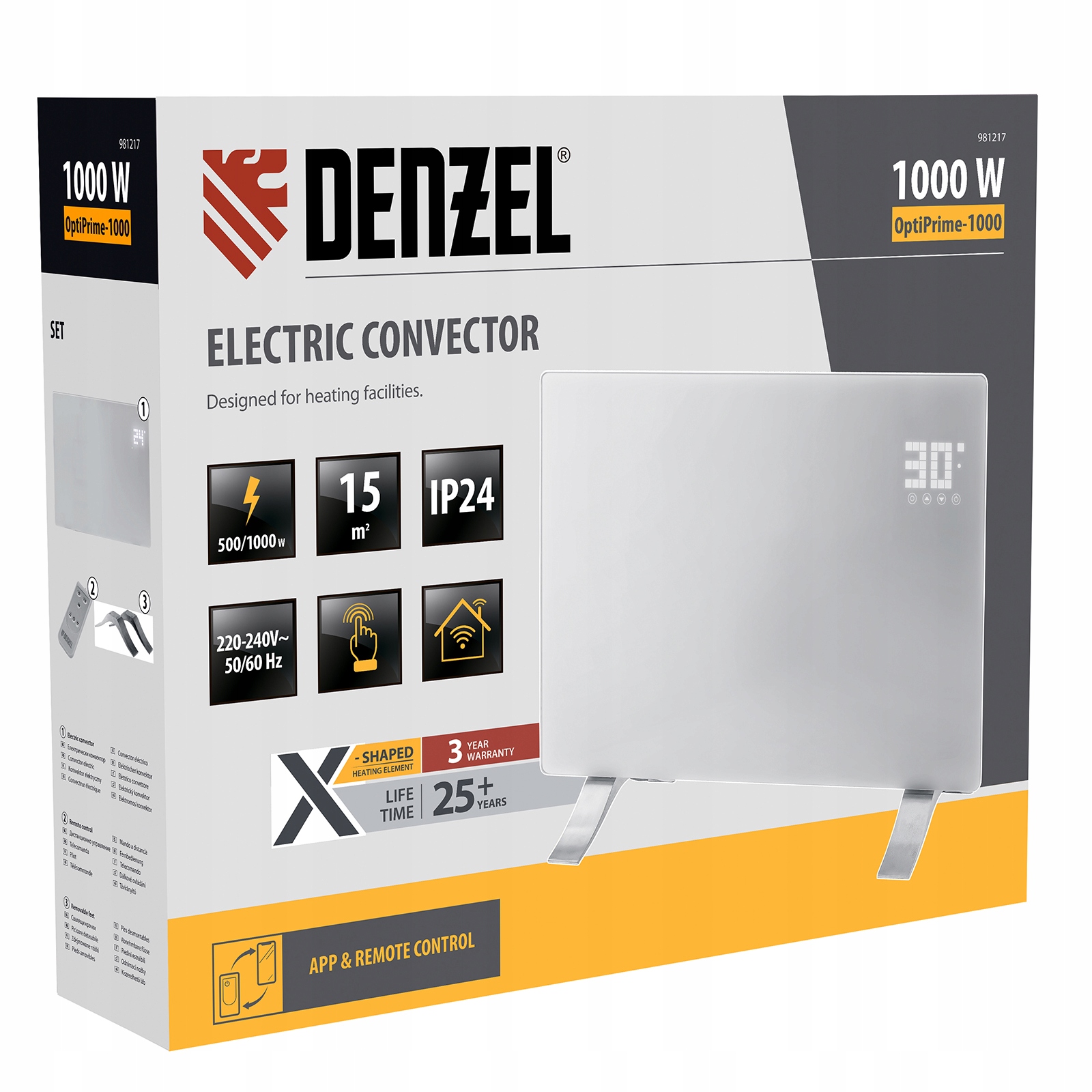 - Электрический конвектор Denzel OptiPrime-1000 98121 максимальной мощностью 1000 Вт, с сенсорным экраном, цифровым термостатом и функцией подключения Wi-Fi, предназначен для отопления квартиры, дачи, загородного дома, офиса, а также полезен в промышленных, жилых и общественных зданиях.