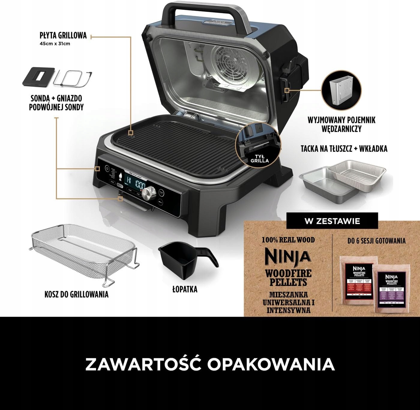 В этот эксклюзивный набор входит гриль Ninja Woodfire Pro Connect XL, а также дополнительные аксессуары, которые облегчат его использование: