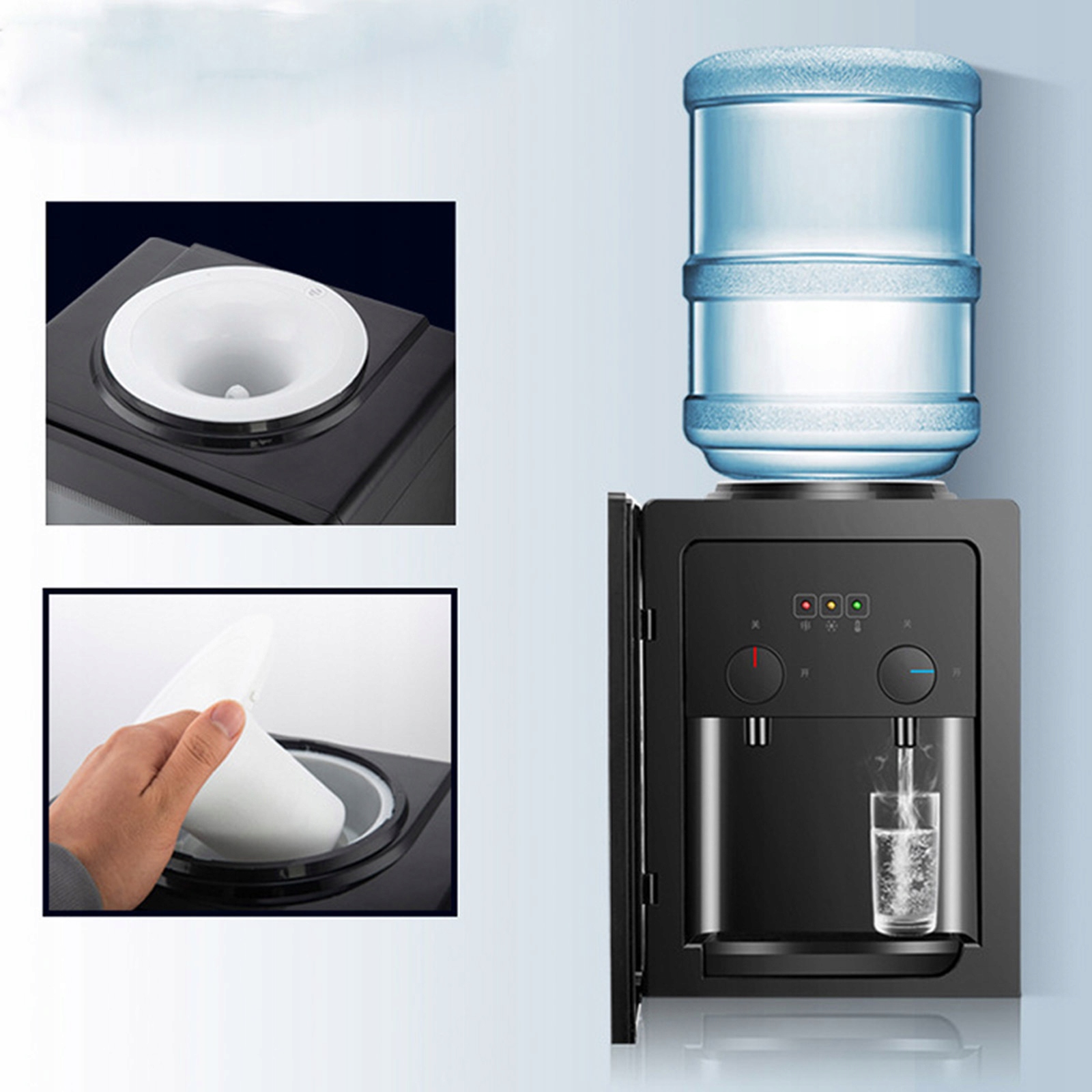 Горячая и холодная вода имеет съемный резервуар для воды, который удобен для фильтрации остатков и избегания блокирования дренажной трубы.