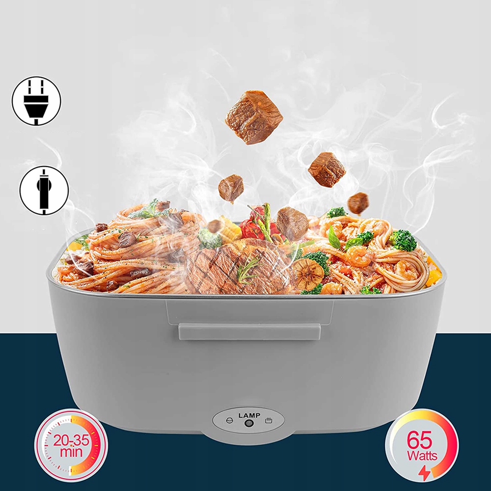 🍱 Попрощайтесь с фаст-фудом. Вы можете нагреть электрический ланч-бокс напрямую, без использования микроволновой печи, подключив его к источнику питания 220 В или к источнику питания 12 В в автомобиле и источнику питания 24 В в грузовике. Благодаря мощности 65 Вт разогрев еды занимает всего 25-35 минут. Идеально подходит для студентов, водителей, рабочих и т. д.