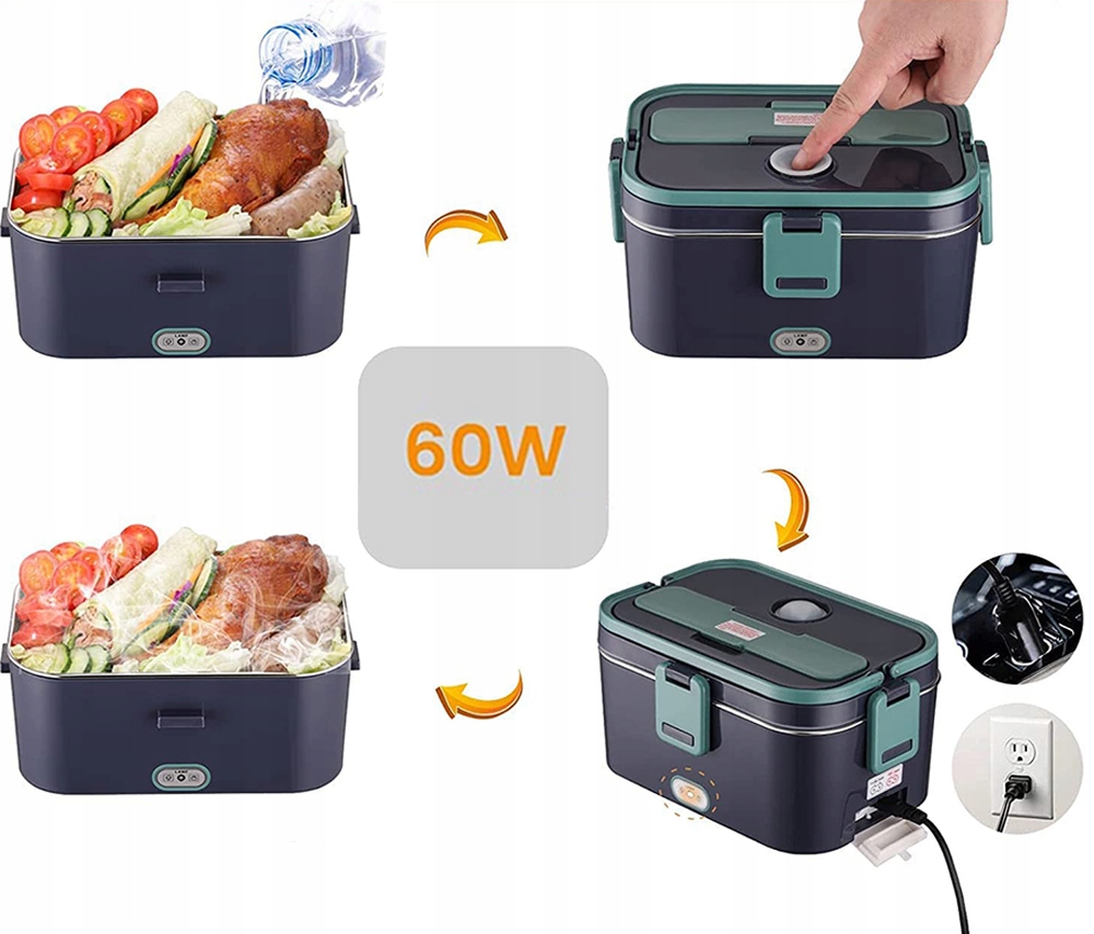 - ⚡ -【Многофункциональность】: двойное напряжение для дома и автомобиля 220 В/12 В/24 В, 60 Вт . С помощью этого ланч-бокса вы можете разогревать еду в любое время и в любом месте без необходимости использовать микроволновую печь.