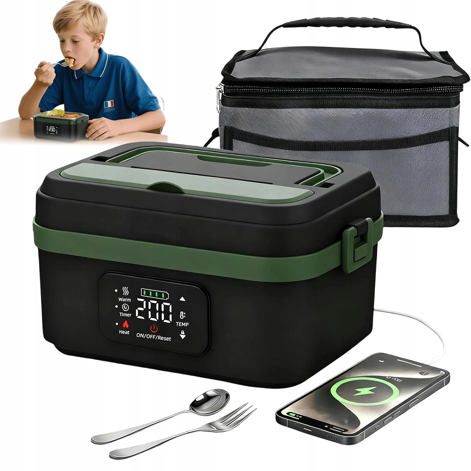 Электрический ланч-бокс с функцией изоляции. Быстрый нагрев со светодиодом