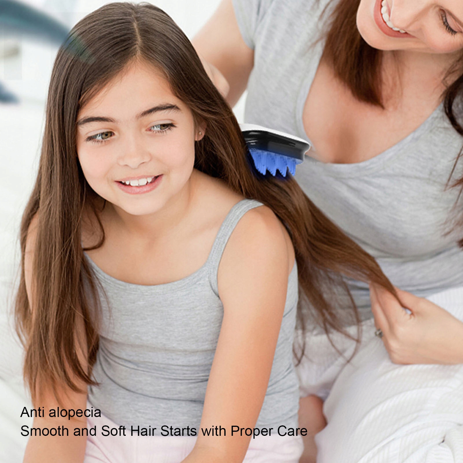 2. Уход за ионами кожи головы: массажная расческа имеет встроенный ионный генератор с отрицательным ионом, который высвобождает отрицательные ионы и поставляет их на скальп во время массажа. Это помогает улучшить окружающую среду кожи головы, облегчить боль и зуд кожи головы, очистить кожу головы и эффективно предотвратить перхоть и лепестки.