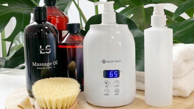 ЭЛЕКТРИЧЕСКИЙ НАГРЕВАТЕЛЬ МАССАЖНОГО МАСЛА + 2 БУТЫЛКИ ПОМПЫ ACUS MED