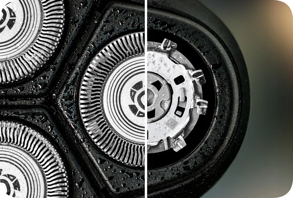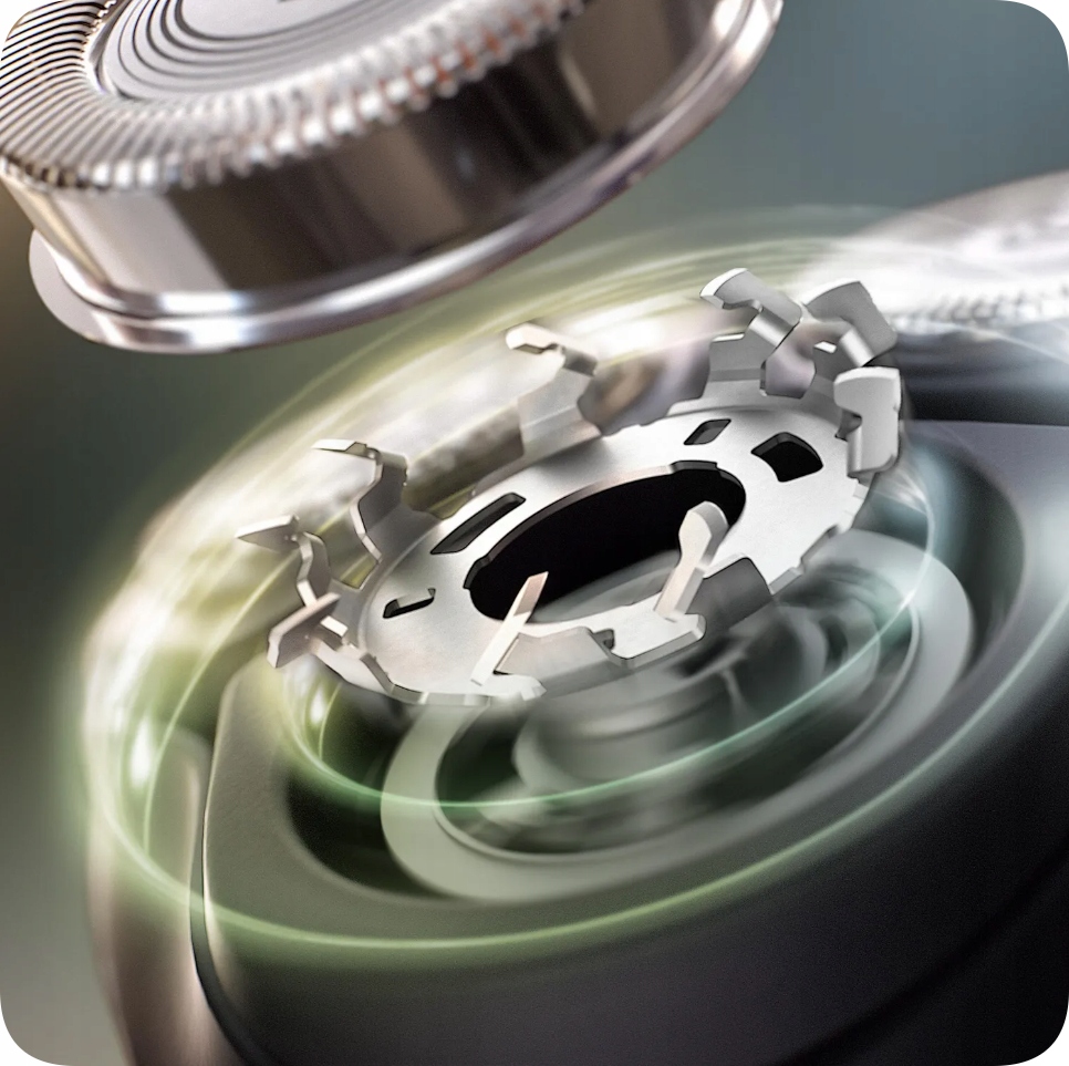 Голова наклоняется и вращается в пяти направлениях, адаптируясь к форме лица. Это позволяет бриться прямо возле кожи, обеспечивая тщательность и комфорт даже для чувствительной кожи.