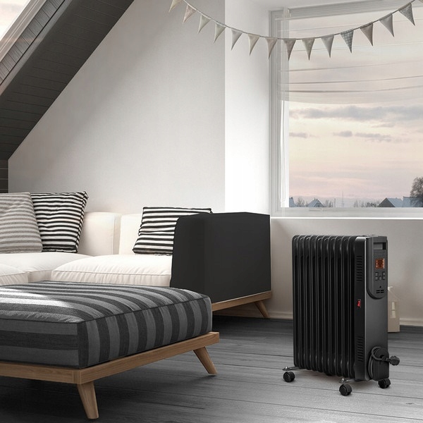 Масляным радиатором также можно управлять с помощью небольшого пульта дистанционного управления, работающего от 2 батареек типа ААА. Это позволяет удобно управлять всеми функциями, не вставая и не приближаясь к устройству.