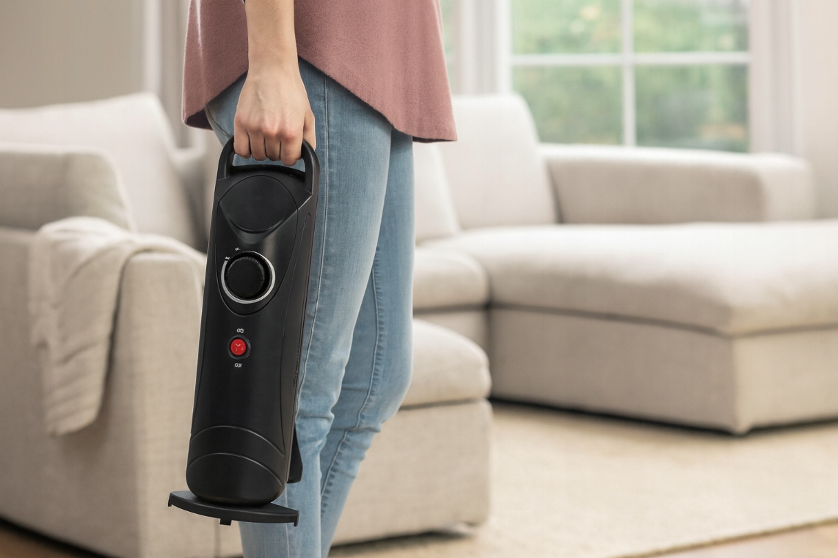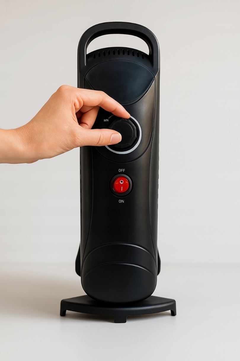 - Эффективный масляный нагревательный элемент — обеспечивает равномерное и продолжительное тепло благодаря естественной циркуляции воздуха. Идеально подходит для офисов, спален и небольших помещений площадью до ок. 15 м².