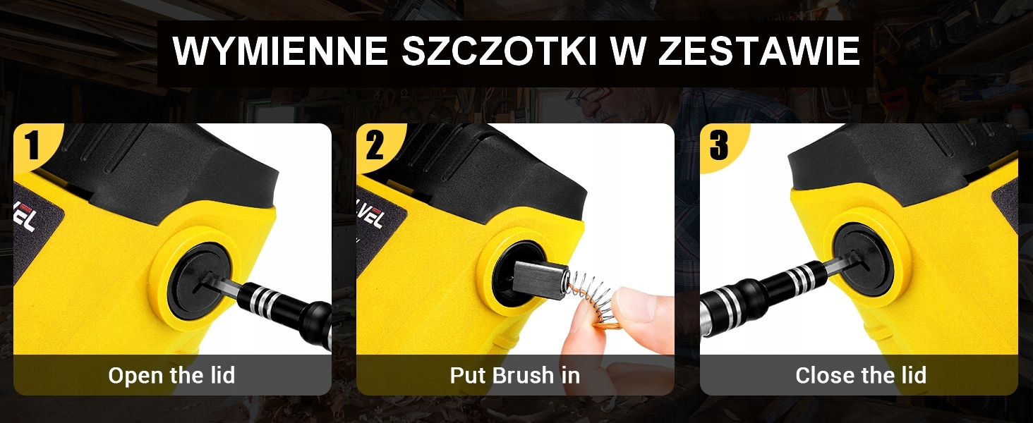 Окно проверки замены щеток ✅БЫСТРАЯ ЗАМЕНА ЩЕТКИ ✅ позволяет заменить угольные щетки за 2 минуты! Это огромное преимущество, поскольку без специальных инструментов машина может вернуться в работу через несколько минут, не вызывая дорогостоящих простоев. В комплект входят запасные угольные щетки, что является еще одним большим преимуществом!