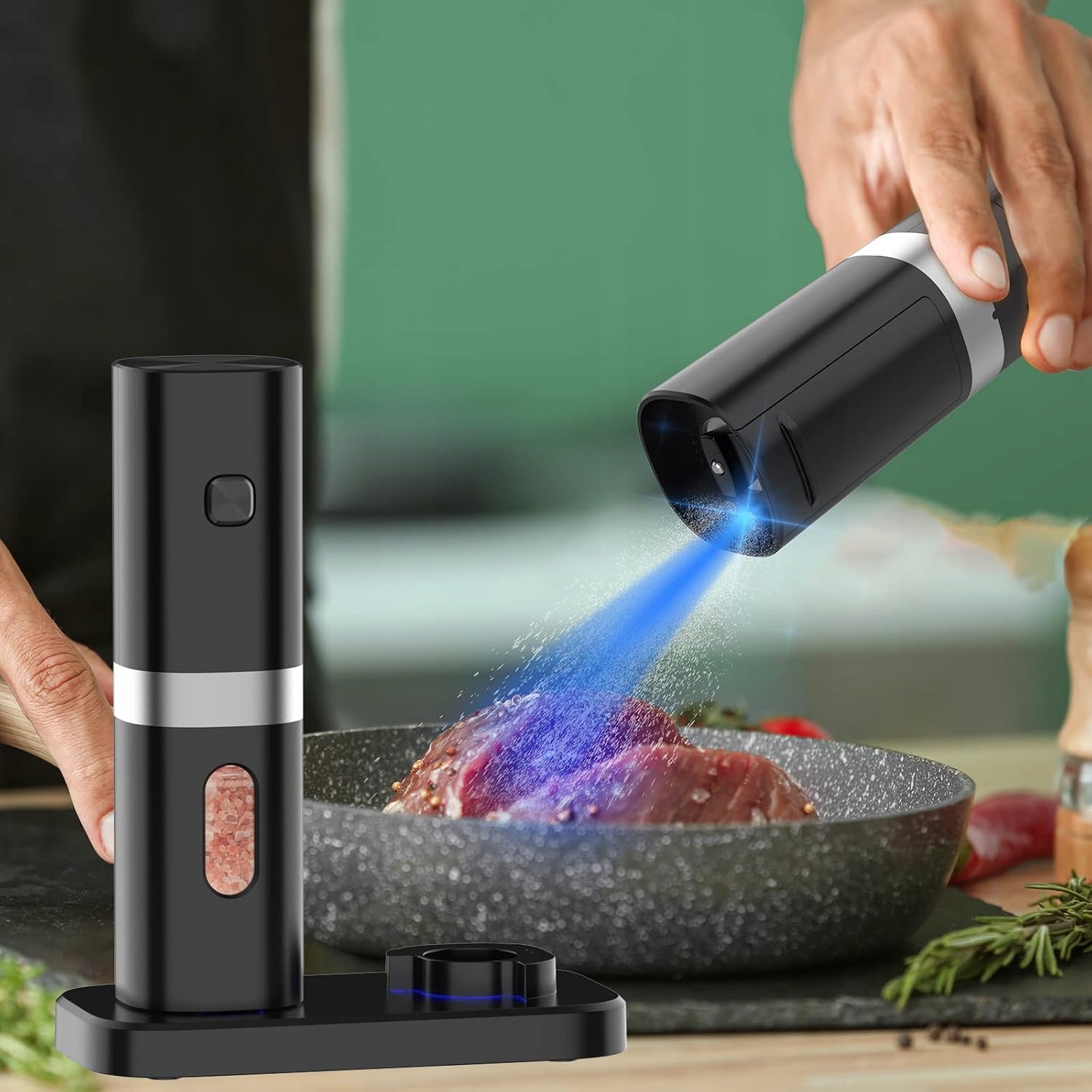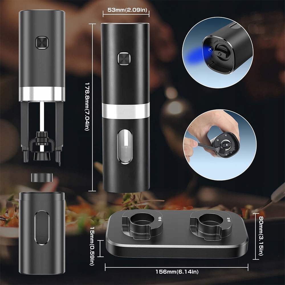 ЭЛЕКТРИЧЕСКАЯ МЕЛЬНИЦА ДЛЯ ПЕРЦА И СОЛИ С АККУМУЛЯТОРНОЙ USB-БАЗОЙ ДЛЯ ЗАРЯДКИ