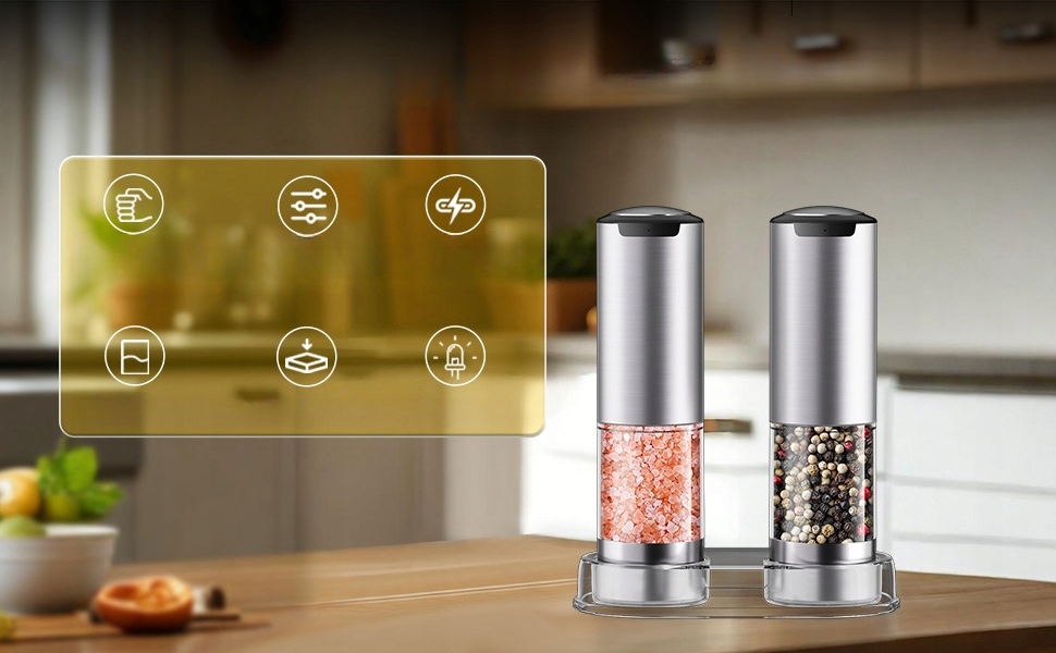 🧂 Электрическая соль и перец (2 штуки): Утечена с электрическим перцем имеет большую кнопку вверху, которую можно легко нажать, чтобы начать измельчение, подходящее для измельчения черного перца, белого перца, гвоздики, толстой соли, перца, тмина и других зерен. Mill: Эта керамическая шлифовальная шлифовальная шлифовальная шлифовальная шлифовка имеет керамическое измельчение ядра, которое можно легко отрегулировать до 6 уровней шлифования: в соответствии с движением руководящих принципов часов для небольшого, в отличие от движения руководящих принципов часов для толстых.