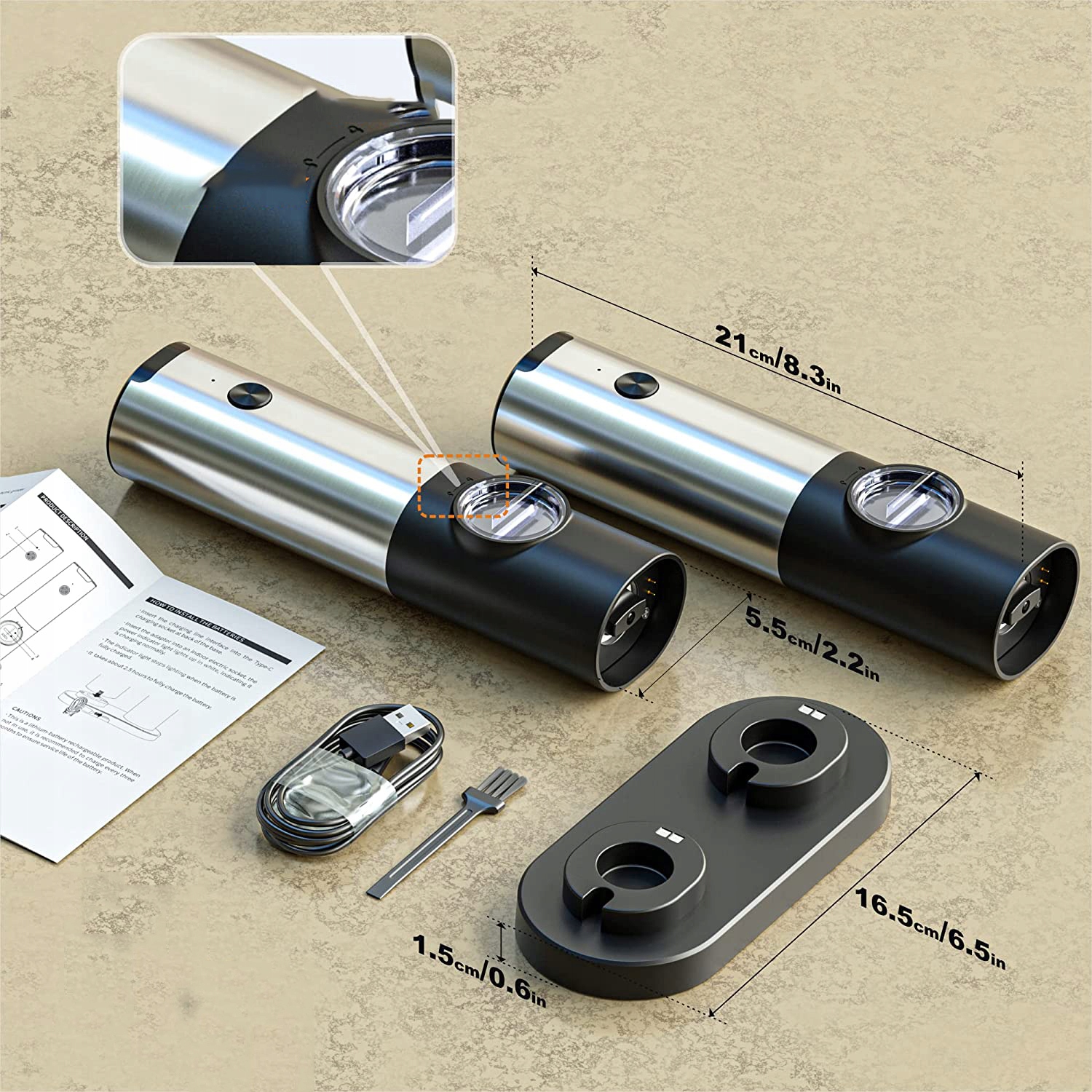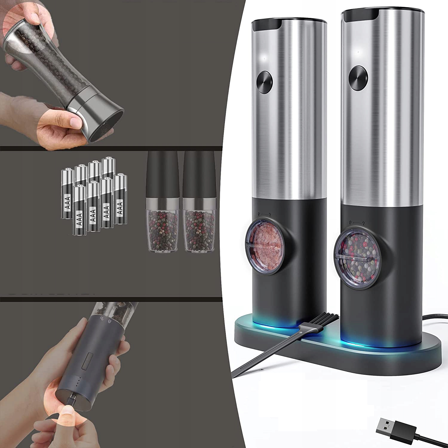 ЭЛЕКТРИЧЕСКАЯ МЕЛЬНИЦА ДЛЯ СОЛИ И СПЕЦИЙ СО СВЕТОДИОДНОЙ ПОДСВЕТКОЙ 2 ШТ. USB