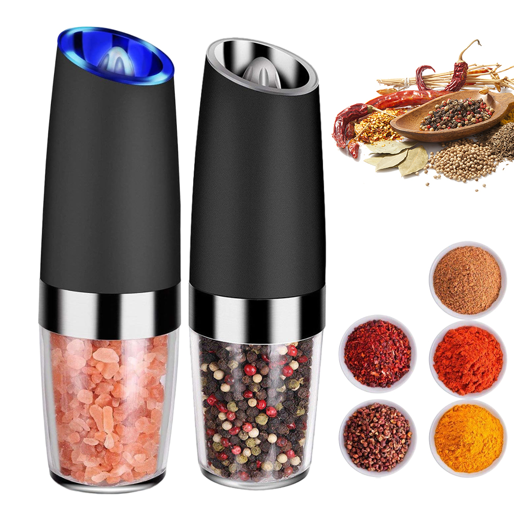 Електричний млинок для солі та перцю, чорний, 2 шт., живлення 25 Вт