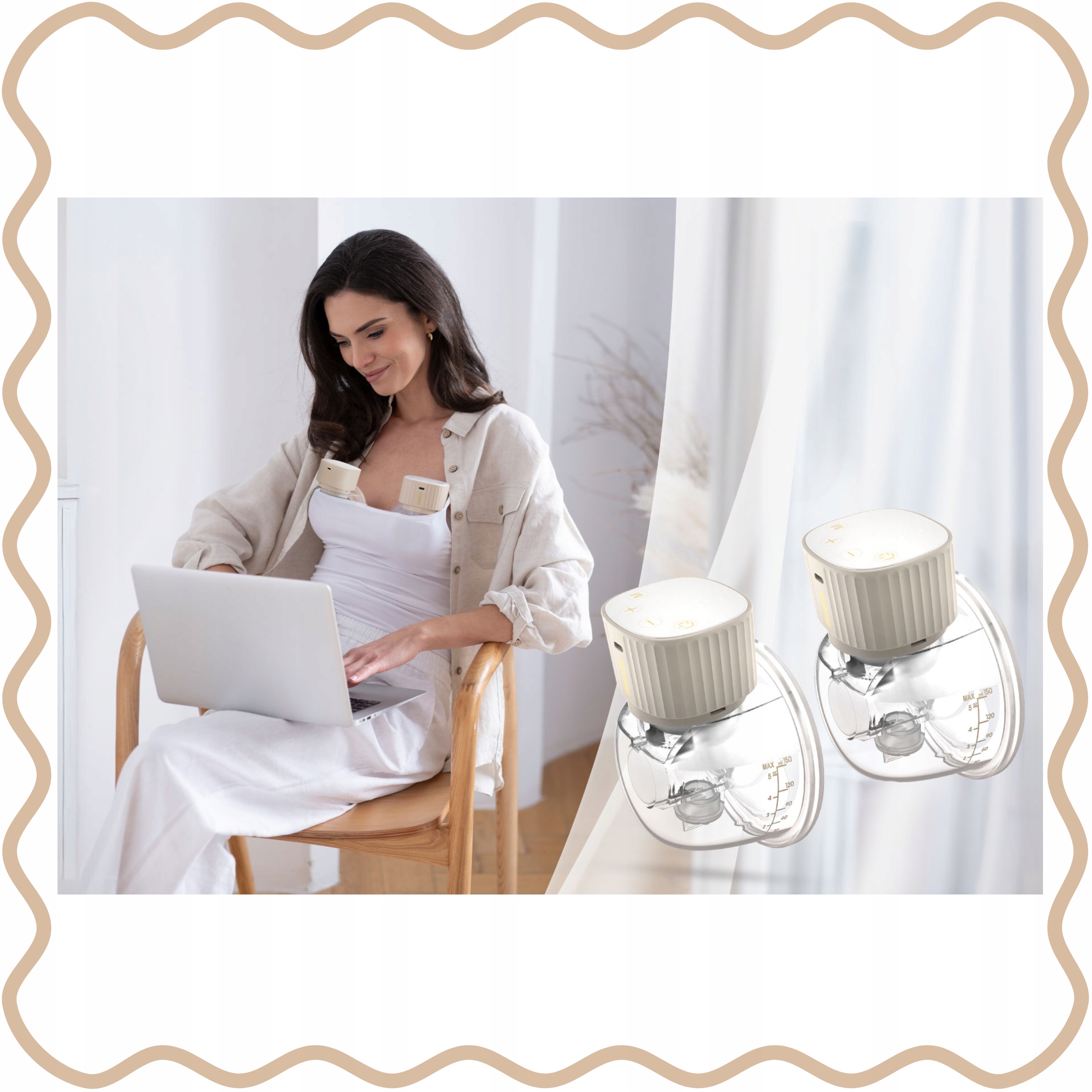 Сдержанный дизайн корпуса позволяет молокоотсосу идеально прилегать к телу, позволяя свободно сцеживать молоко, не держа устройство в руках. Кроме того, двойная модель позволяет сцеживать из двух грудей одновременно, что позволяет сэкономить время и накопить больший запас молока.