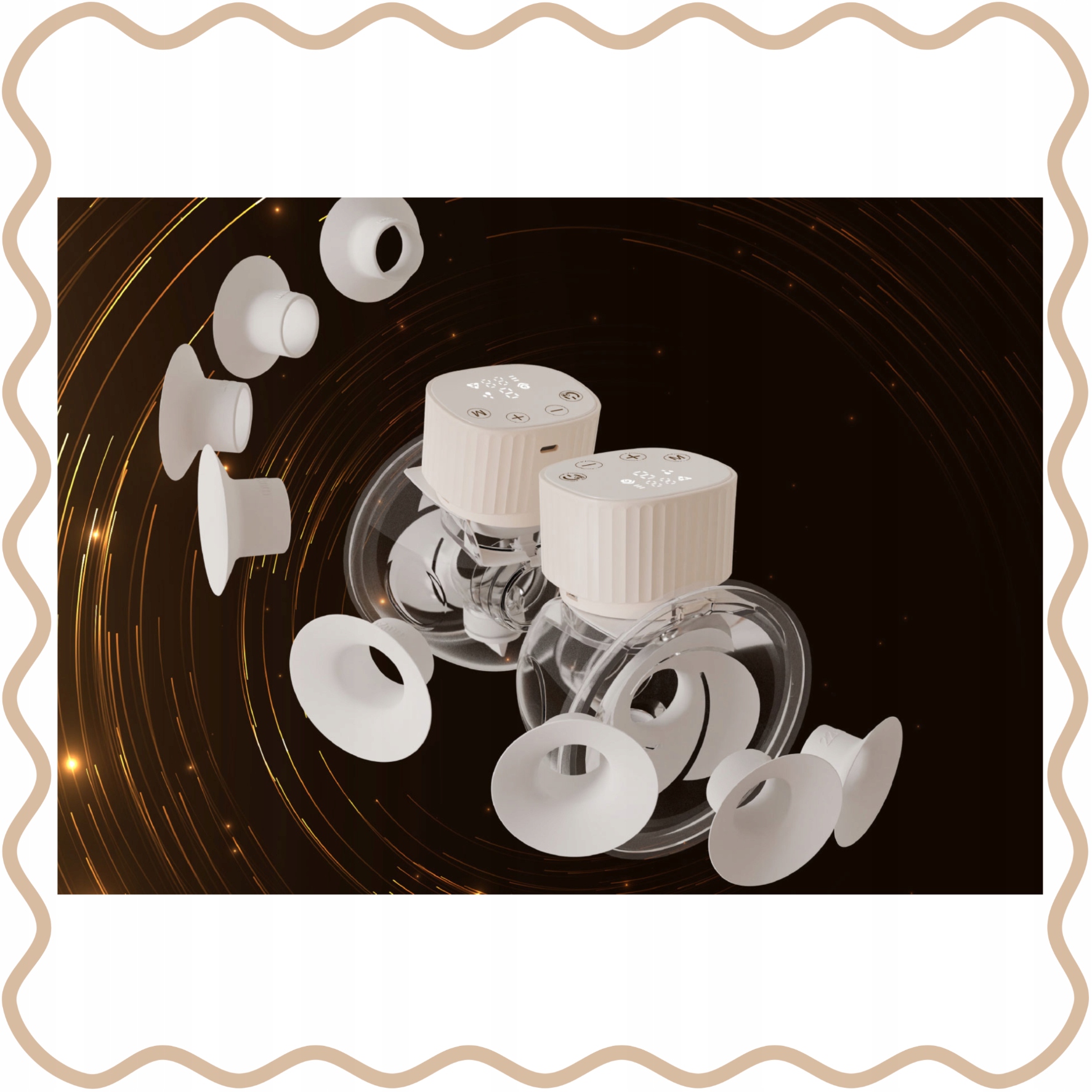 ➡️ Содержимое набора: 2 насосных устройства, 2 силиконовые воронки 25 мм с разъемом, 2 крышки воронок, 2 переходника воронки 15/17/19/22 мм, 4 мембраны, 4 клапана, 2 контейнера для молока 150 мл, 4 силиконовые заглушки, инструкция, 2 кабеля USB-C, 2 нагрудника