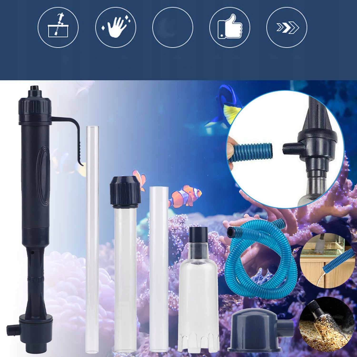 - 🐠Полезность: В комплект входит аквариумный пылесос и сифон для воды. Его также можно использовать в качестве сифона для подмены воды или для опорожнения аквариума, подключив шланг к выпускному отверстию.