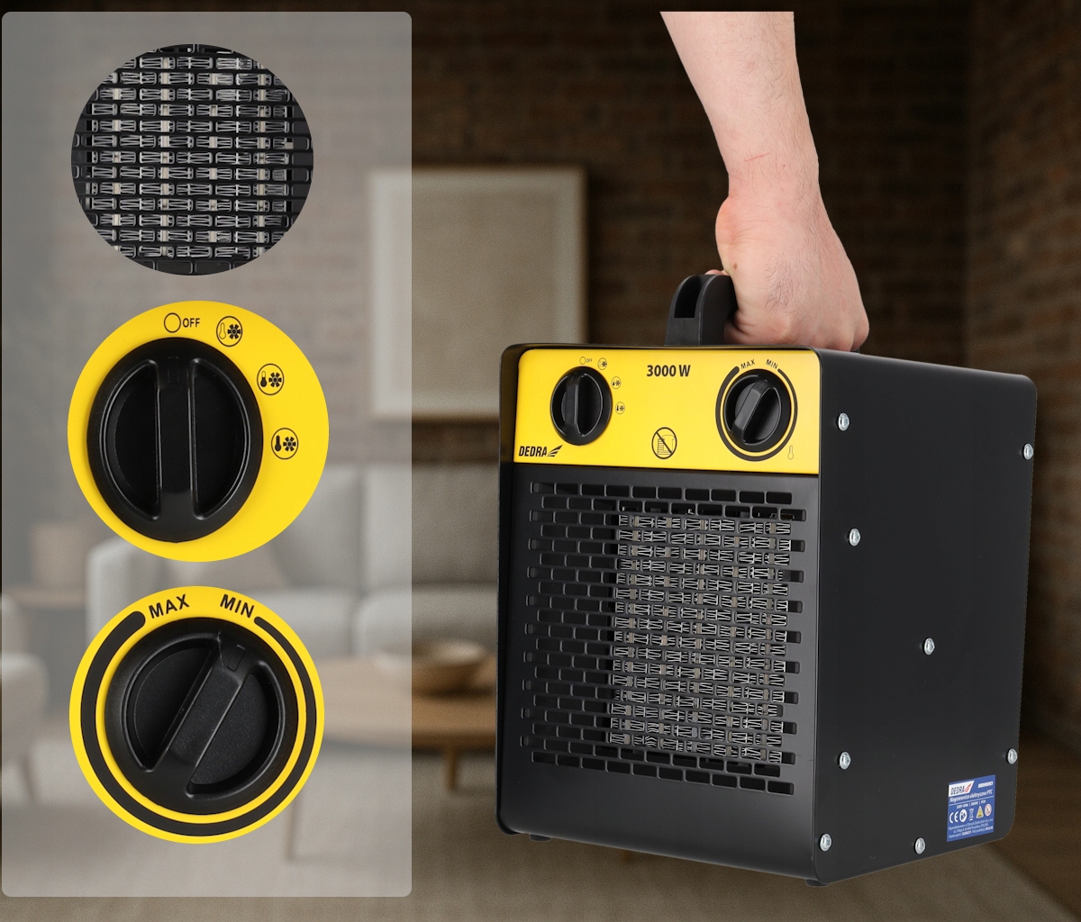 Электрогреватель Dedra с регулировкой керамики термостата 3000 Вт PTC
