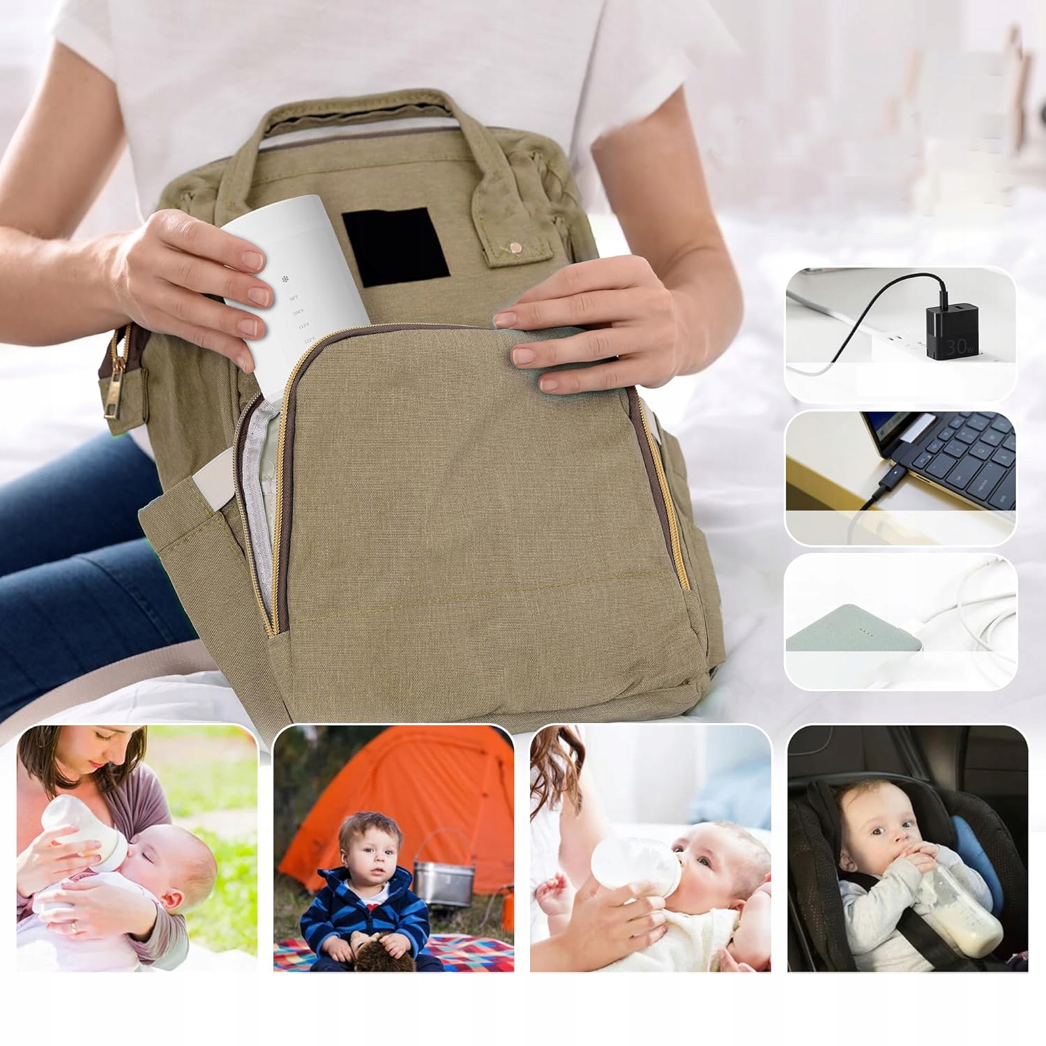 Обогреватель бутылки изготовлен из высококачественного PP, разрешенного для контакта с едой, 304 и ABS Natenlable Steel, что гарантирует долговечность и безопасность . Он имеет мощный 8800 мАч , который можно заряжать через USB. Его размер составляет всего 10,9 * 7,8 * 7,8 см, а вес составляет всего 0,6 кг. Его можно легко вставить в любую сумку и идеально подходит для ношения в путешествии . Кроме того, нагреватель бутылки предлагает четыре различных уровня температуры от 37 ° C до 50 ° C, , чтобы обеспечить ребенку оптимальное тепло.