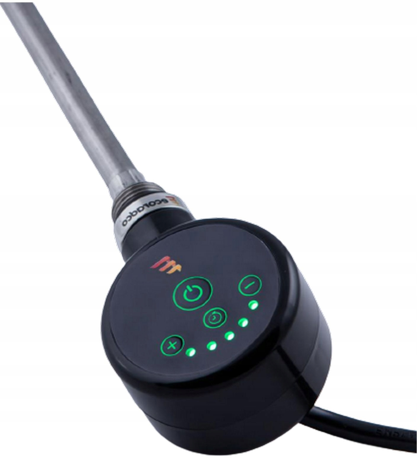 Основная кнопка используется для включения/выключения нагревателя , благодаря боковому маркеру "+" и " -" - мы можем отрегулировать температуру . Опция таймера позволяет установить вежливое время от 1 до 5 часов (количество отображаемых диодов равно количеству часов).