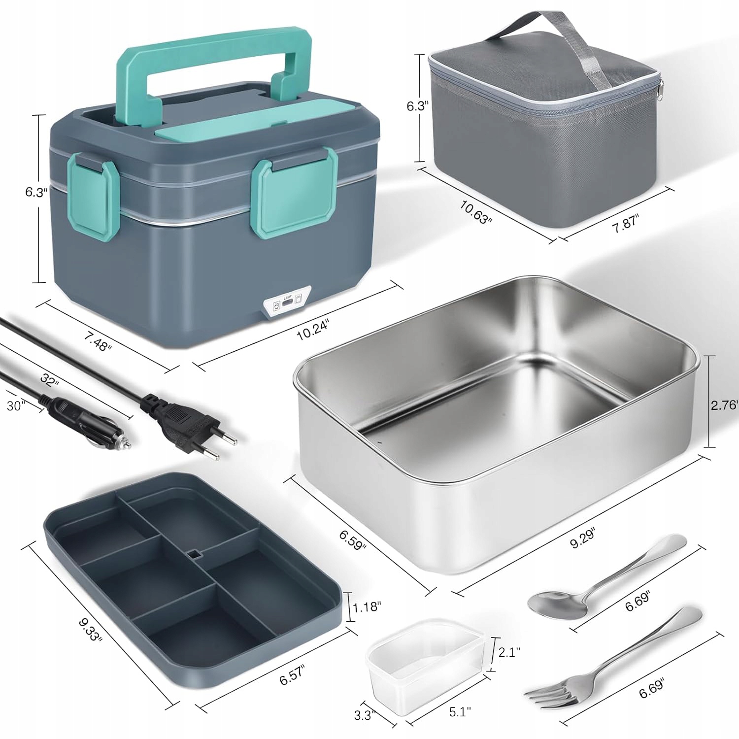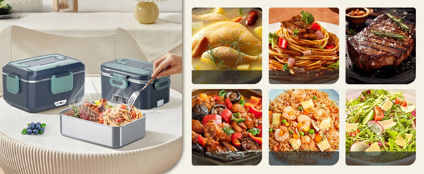 - ✔️Съемный контейнер можно мыть в посудомоечной машине, поэтому его легко мыть. В комплект входят столовые приборы и термосумка для удобной переноски. (Совет: не очищайте нагревательный элемент водой, так как это может вызвать короткое замыкание.)