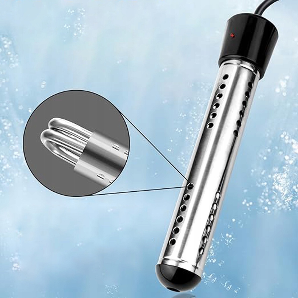 Высококачественный и безопасный погружной водонагреватель оснащен высококачественной защитной крышкой из нержавеющей стали, которая эффективно предотвращает прямой контакт нагревательного элемента с людьми или животными.