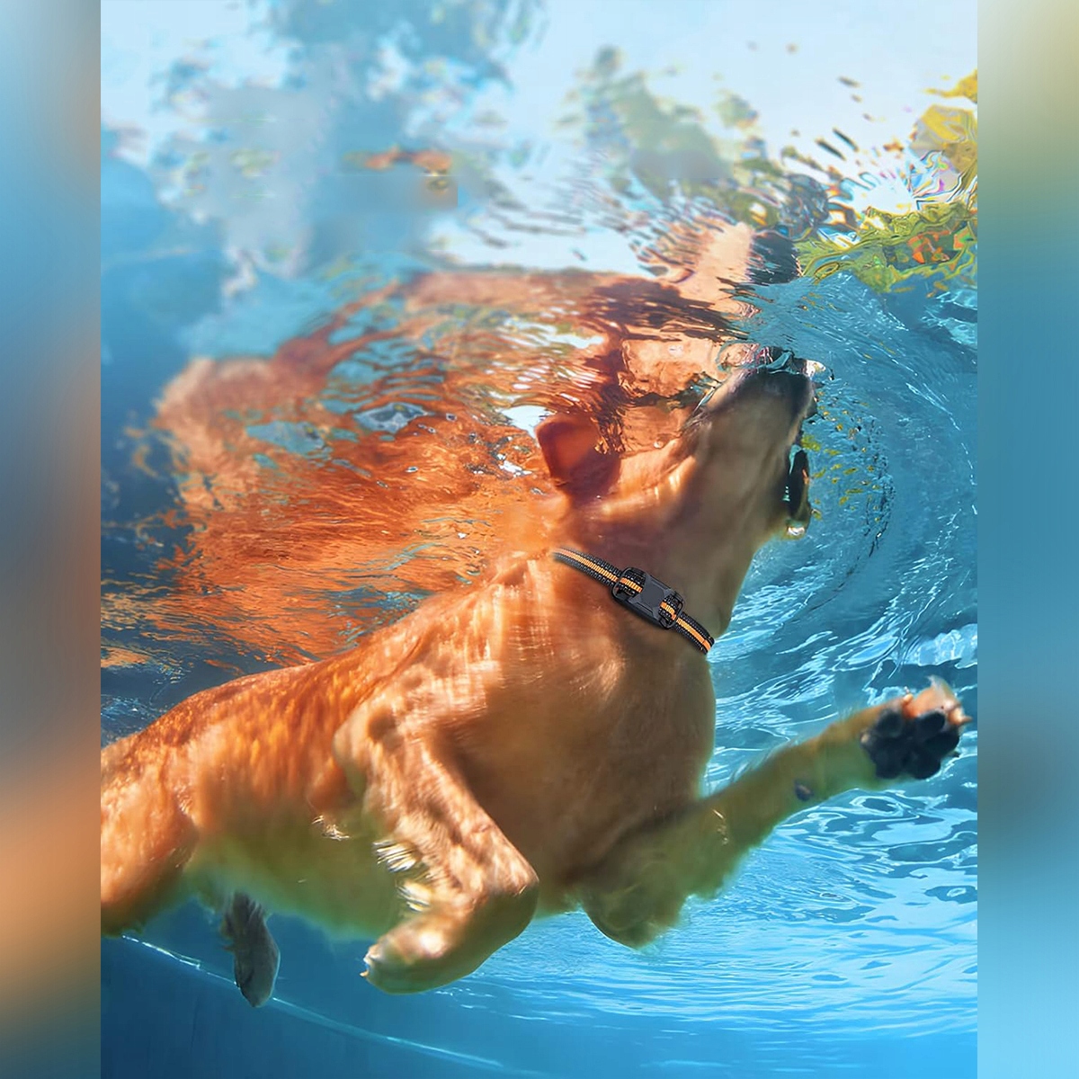 Наш ошейник полностью водонепроницаемый и выдерживает погружение на глубину до 1 метра (максимум на 30 минут). Благодаря этому ошейник подходит как для домашнего, так и для наружного использования. Вы можете легко использовать его во время дождя и метели, а когда ваш питомец решит спонтанно искупаться в озере или близлежащем пруду, вам не придется беспокоиться о его работоспособности.