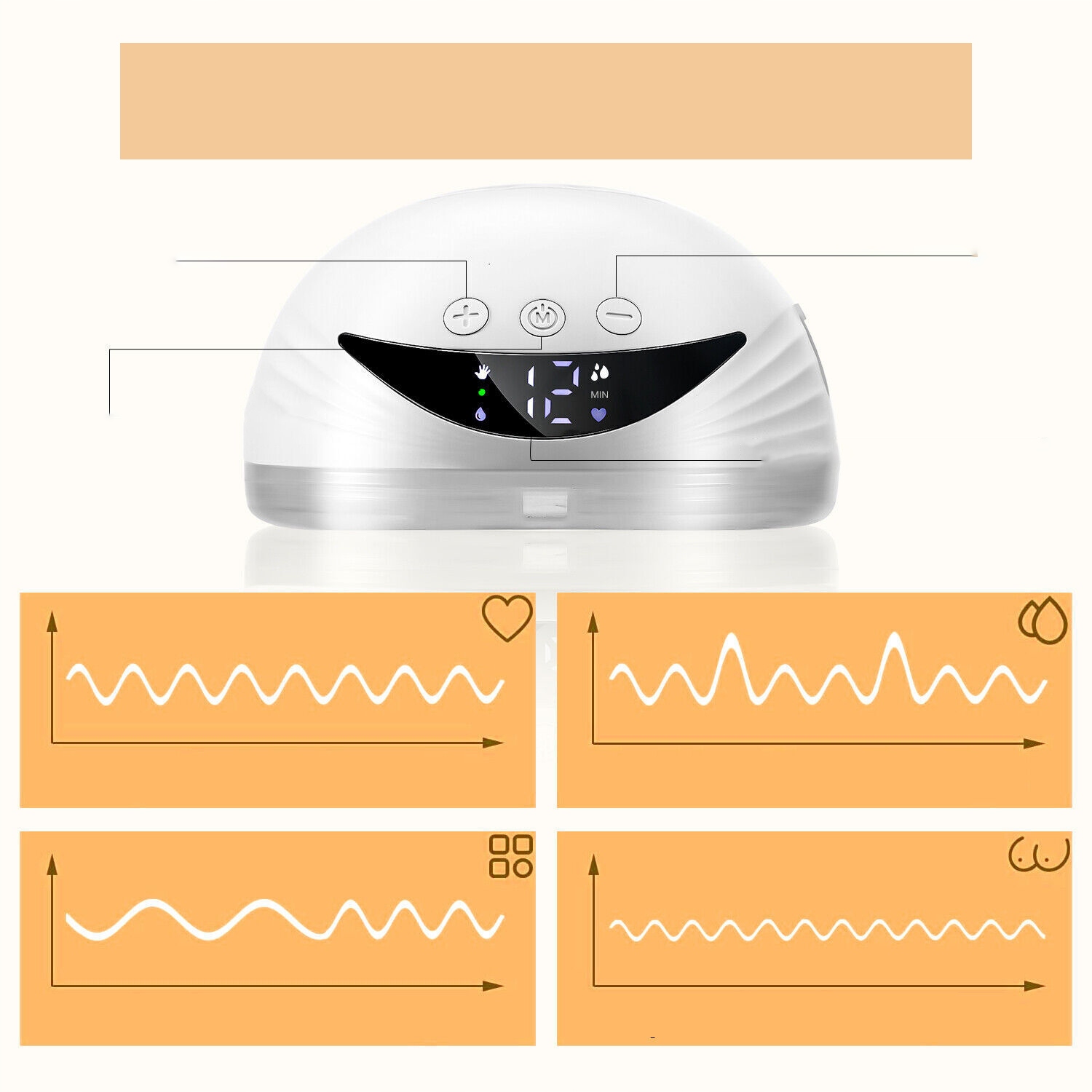 Электрический насос грудного насоса, разработанный специально для грудного вскармливания; Четыре режима: режим массажа (12 уровней), режим всасывания (12 уровней), режим ухода (12 уровней) и режим переключения частоты (12 уровней). Благодаря грудному насосу грудного вскармливания становится легким. Вы можете точно установить идеальный уровень всасывания, постоянно адаптировать его и наслаждаться самыми удобными, персонализированными моментами грудного вскармливания. Примечание. Всегда применяйте принцип массажа, чтобы стимулировать перед глубоким сосанием!