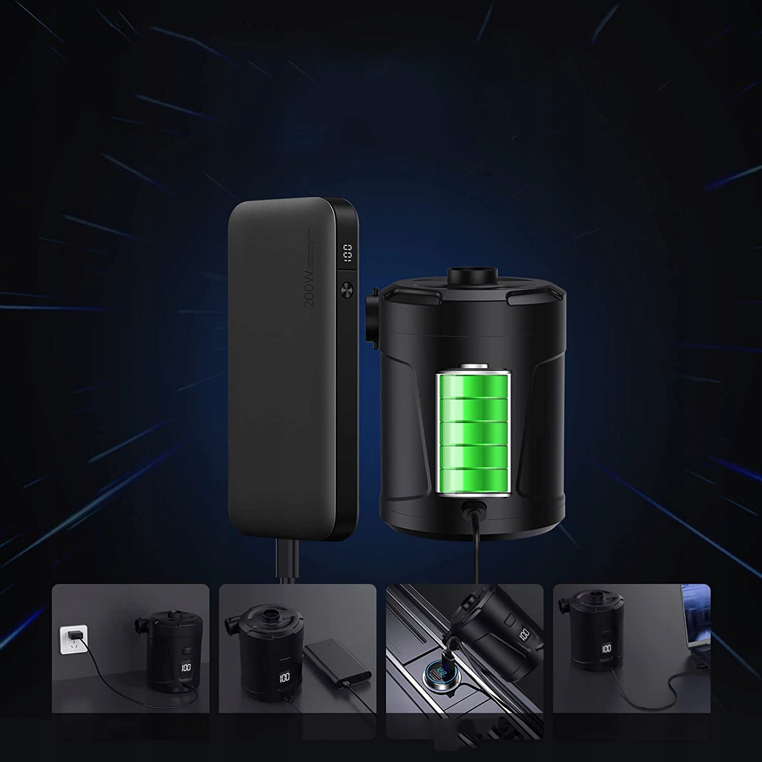 оснащен эффективным бесщеточным двигателем, обеспечивает стабильный воздушный поток под высоким давлением и позволяет матрасу надувать за короткое время. Он особенно подходит для транспортировки предметов высокой капоты, таких как надувные матрасы и Lifebuoy, что позволяет вам спасти время ожидания.