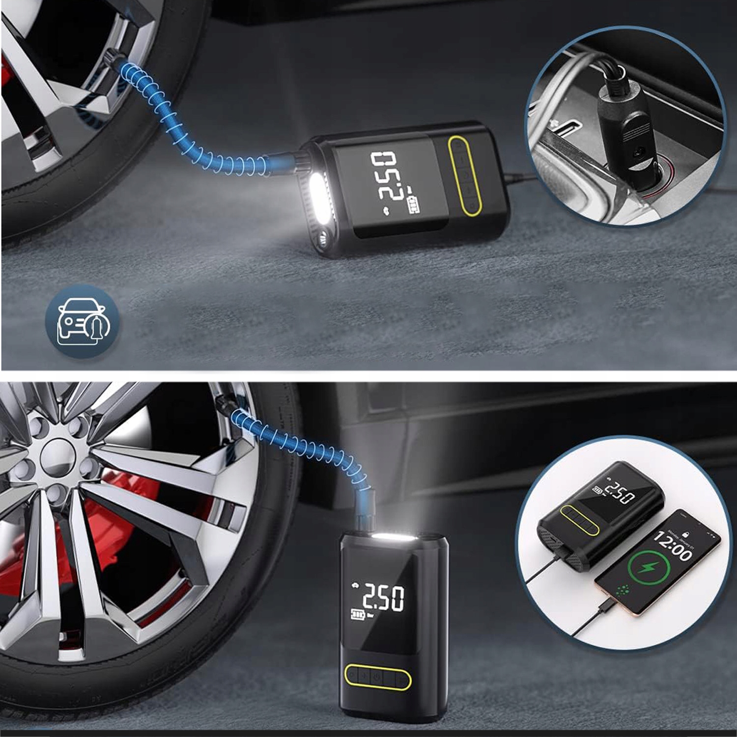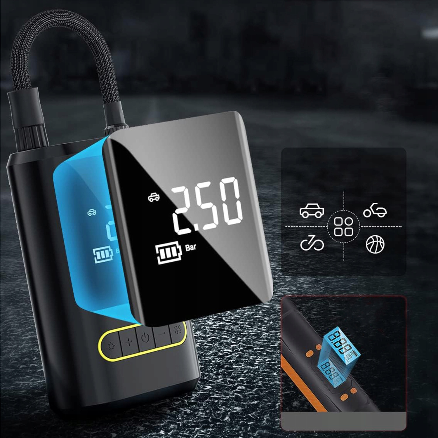 ⚽ 【более мощный двигатель и более быстрая инфляция】: Воздушный насос Мощный электрический воздушный насос обеспечивает давление 150 фунтов на дюйм и воздушного потока 32 л/мин. Полное раздувание шин 25-35 занимает всего 1 минуту, а в случае шин 0-36 фунтов на квадратный дюйм-8 минут.