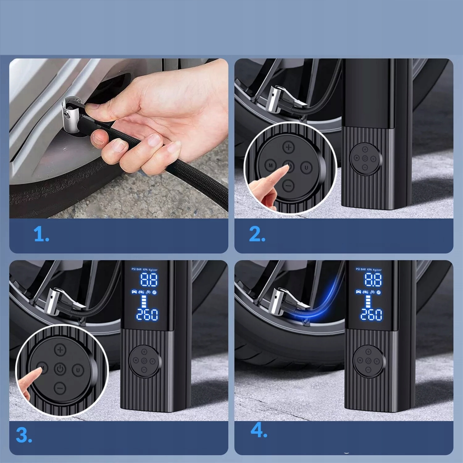 - 🚗2). Перед зарядкой проверьте, что воздушный насос имеет питания. После продолжительного использования нагревающий шланг нагревается, что является нормальным явлением. В этом случае рекомендуется подождать, пока он не остынет перед использованием
