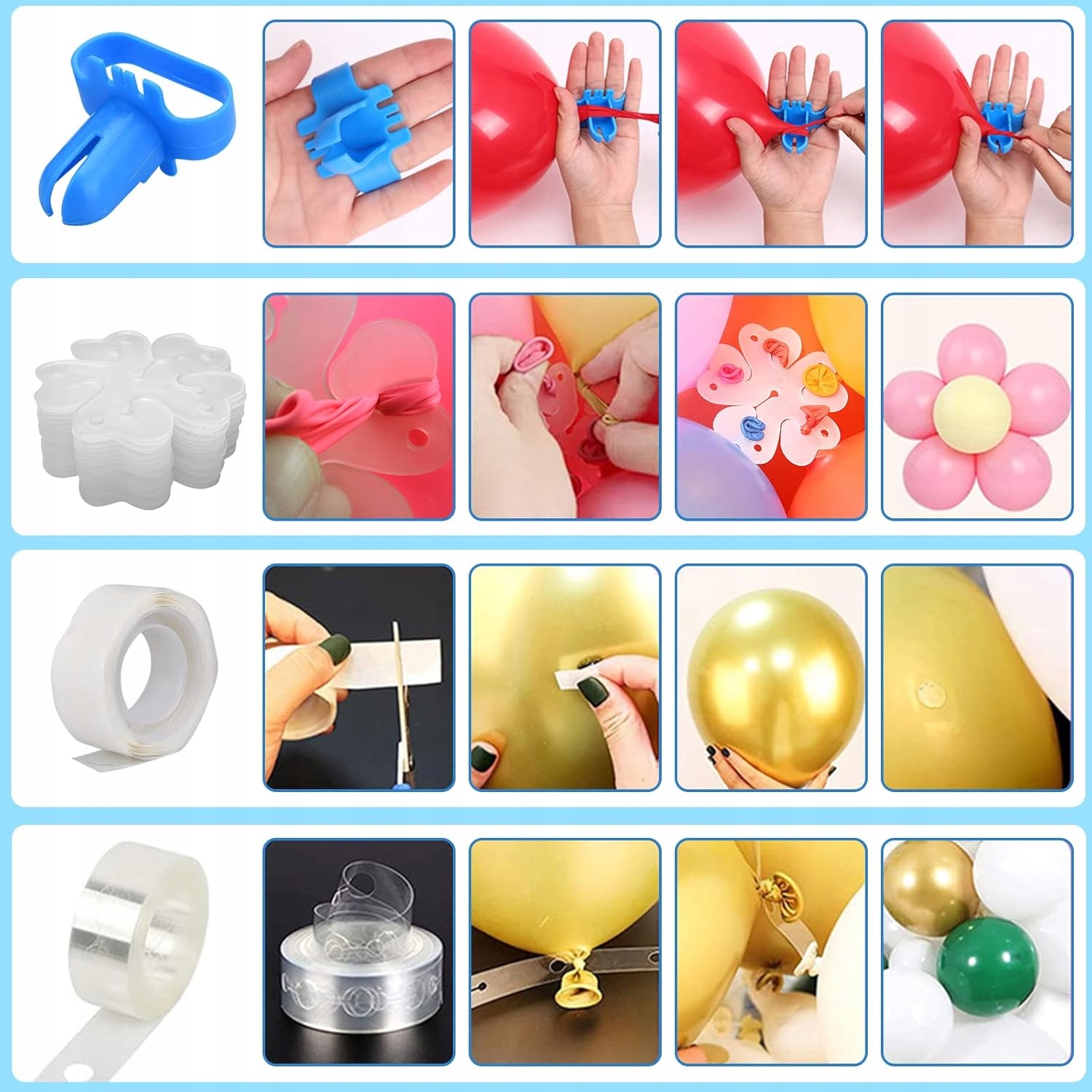 Вы получите: 1 электрический баллонный насос; 100 х латекс баллон 20 см (смешанные цвета); 50 латексных воздушных шаров в образе сердца (смешанные цвета), 10 красочных цветочных шариков, 10 золотых латексных воздушных шаров, 20 цветочных зажимов; 4 красочные ленты; 2 x 100 точек клея, 2 артефакта для переплета, 2 x лук, 1 x Руководство пользователя