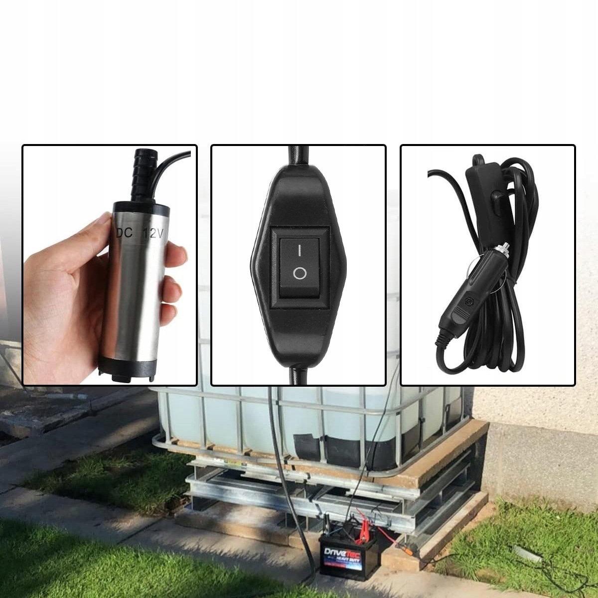 - 1 дизельный погружной насос на 12 В в стиле автомобильного прикуривателя.