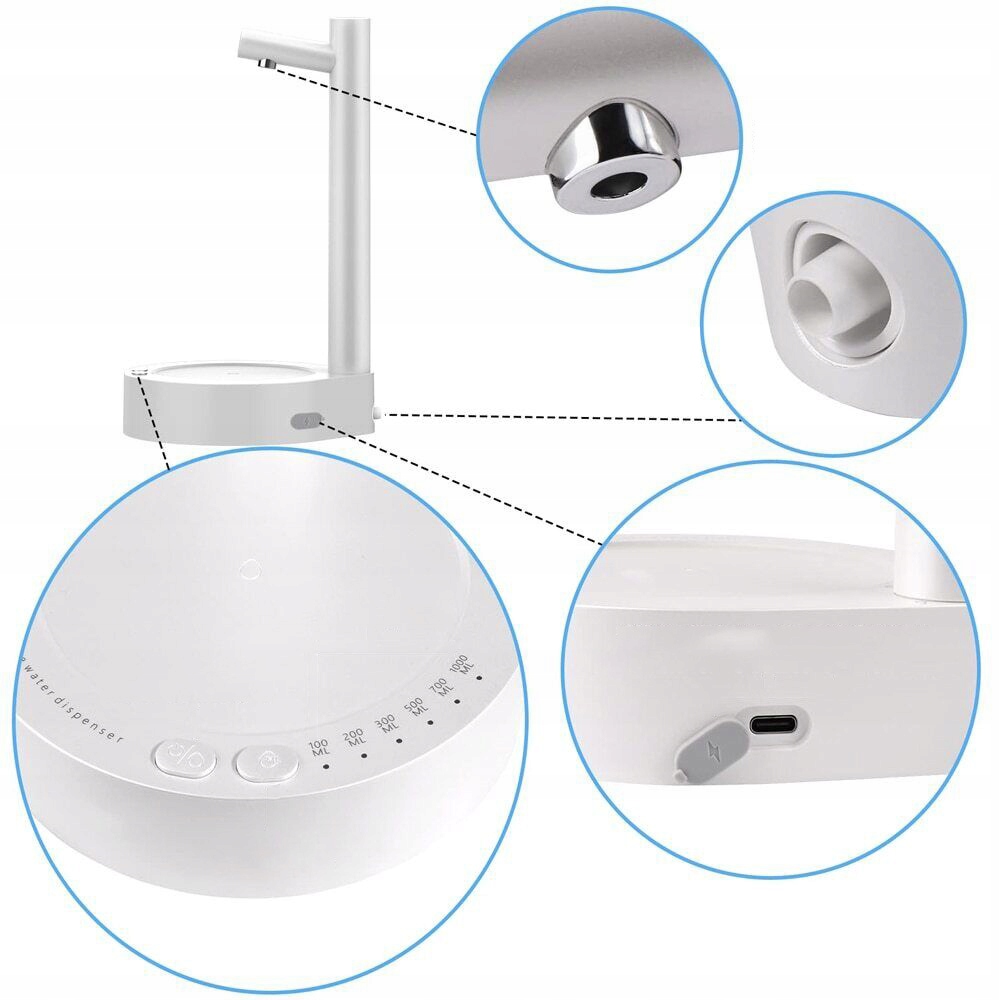 🍸Диспенсер для воды оснащен встроенным USB-аккумулятором емкостью 800 мАч, который быстро заряжается и имеет длительный срок службы. Если вы используете адаптер для зарядки, используйте адаптер для зарядки на 5 В, в противном случае насос диспенсера для воды будет поврежден.