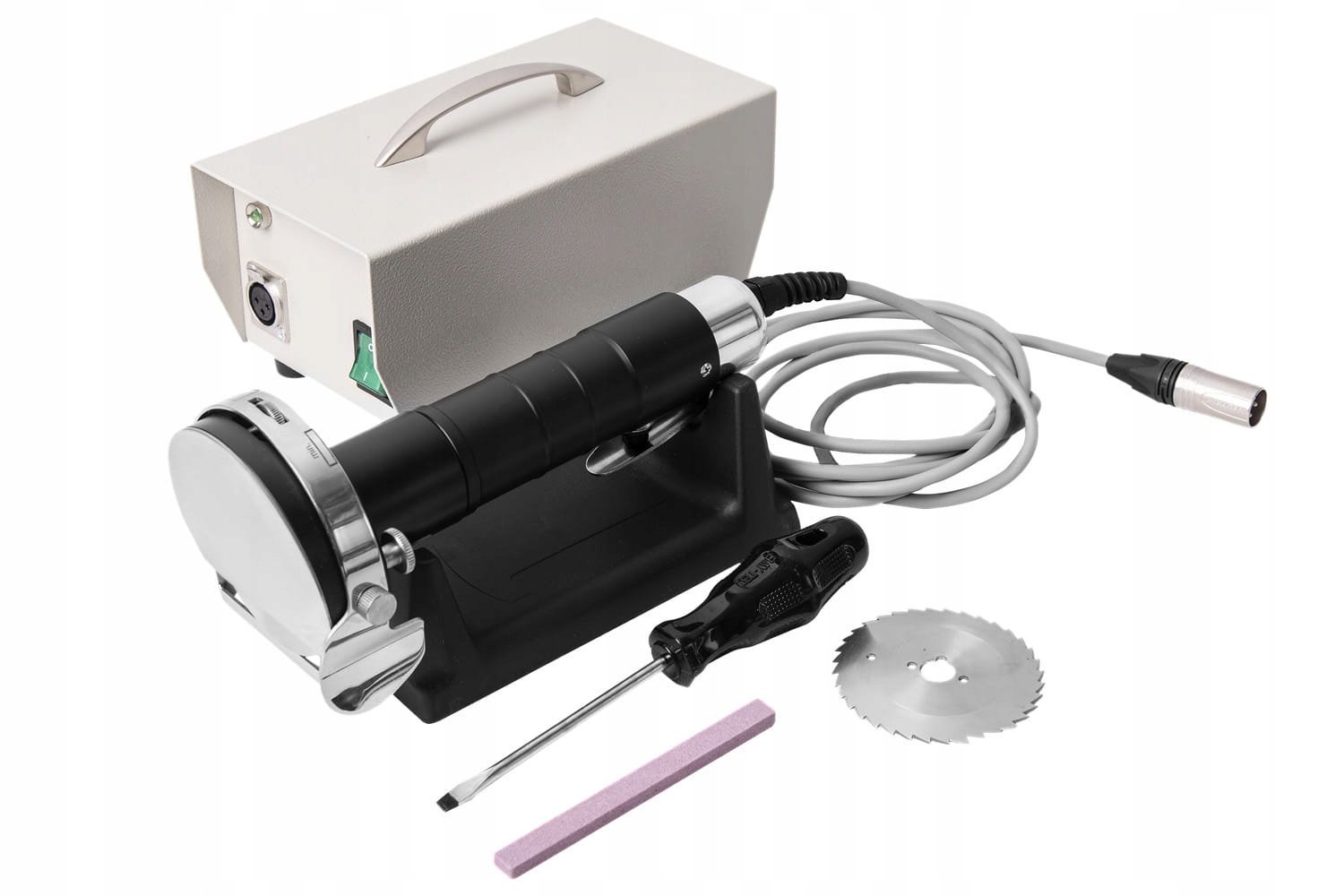 - В комплект входит блок питания, второе лезвие с зубчатым лезвием и точилка.