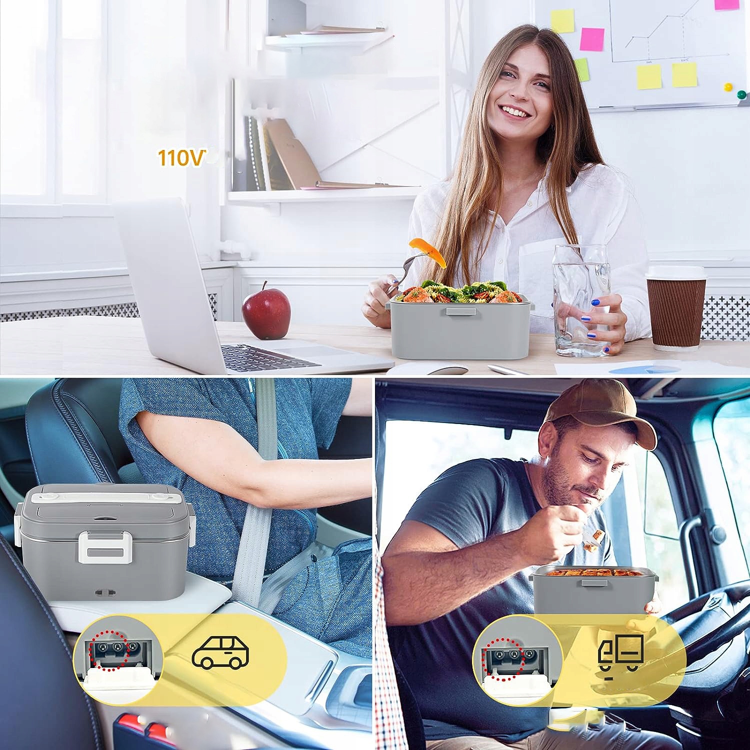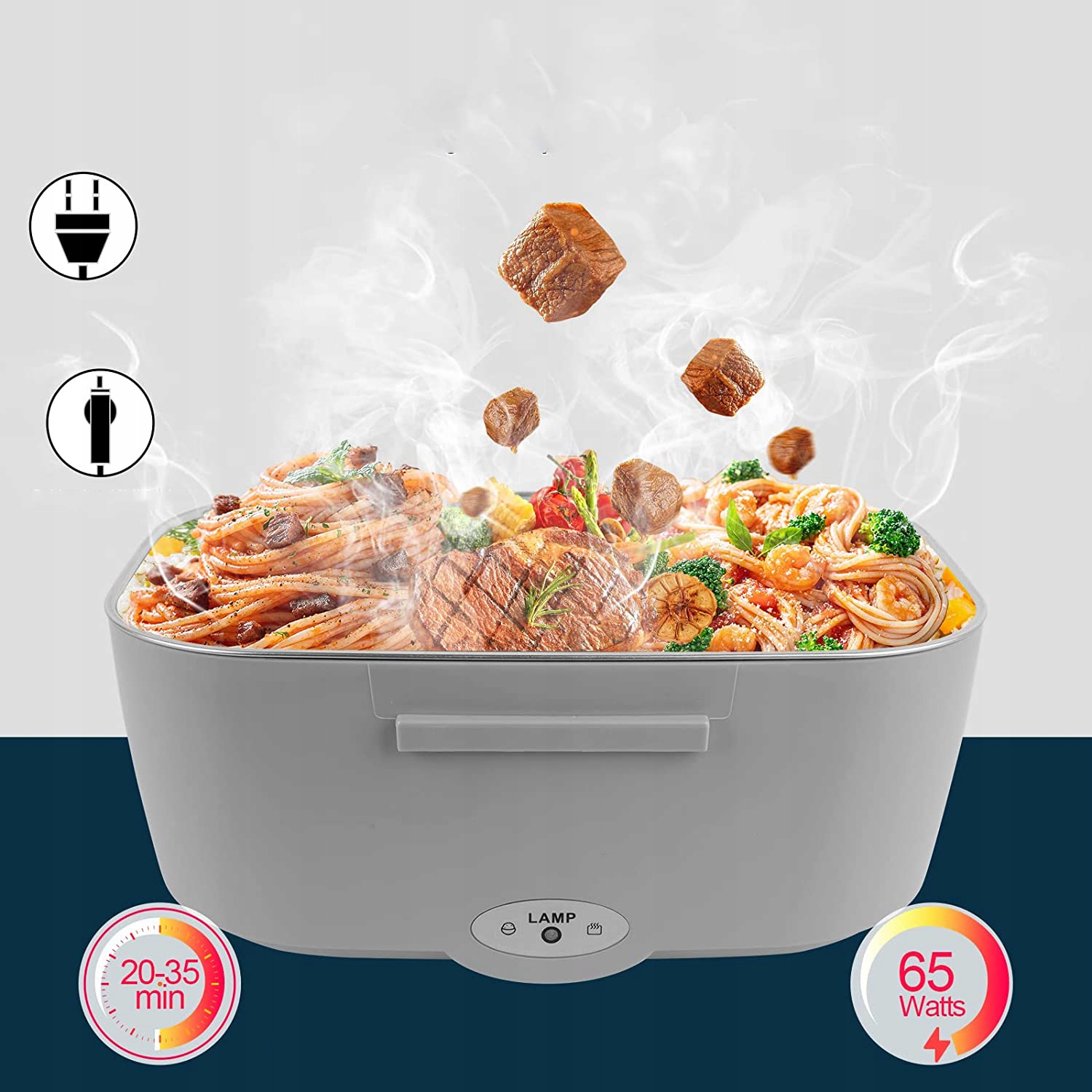 【【【 2 в 1 - электрический контейнер для обеда 】 Спрощай, как быстро питайтесь, вы можете нагреть электрический обеденный контейнер непосредственно без микроволновой печи, соединяя его с 220 В или до 12 В от машина и из машины и 24 В от грузовика. С мощностью 65 в нагревании блюда, это занимает всего 25-35 минут. Идеально подходит для студентов, водителей и сотрудников и т. Д. , который улучшает недостаток утечки жидкости и предотвращает разлив жидкой пищи во время шока