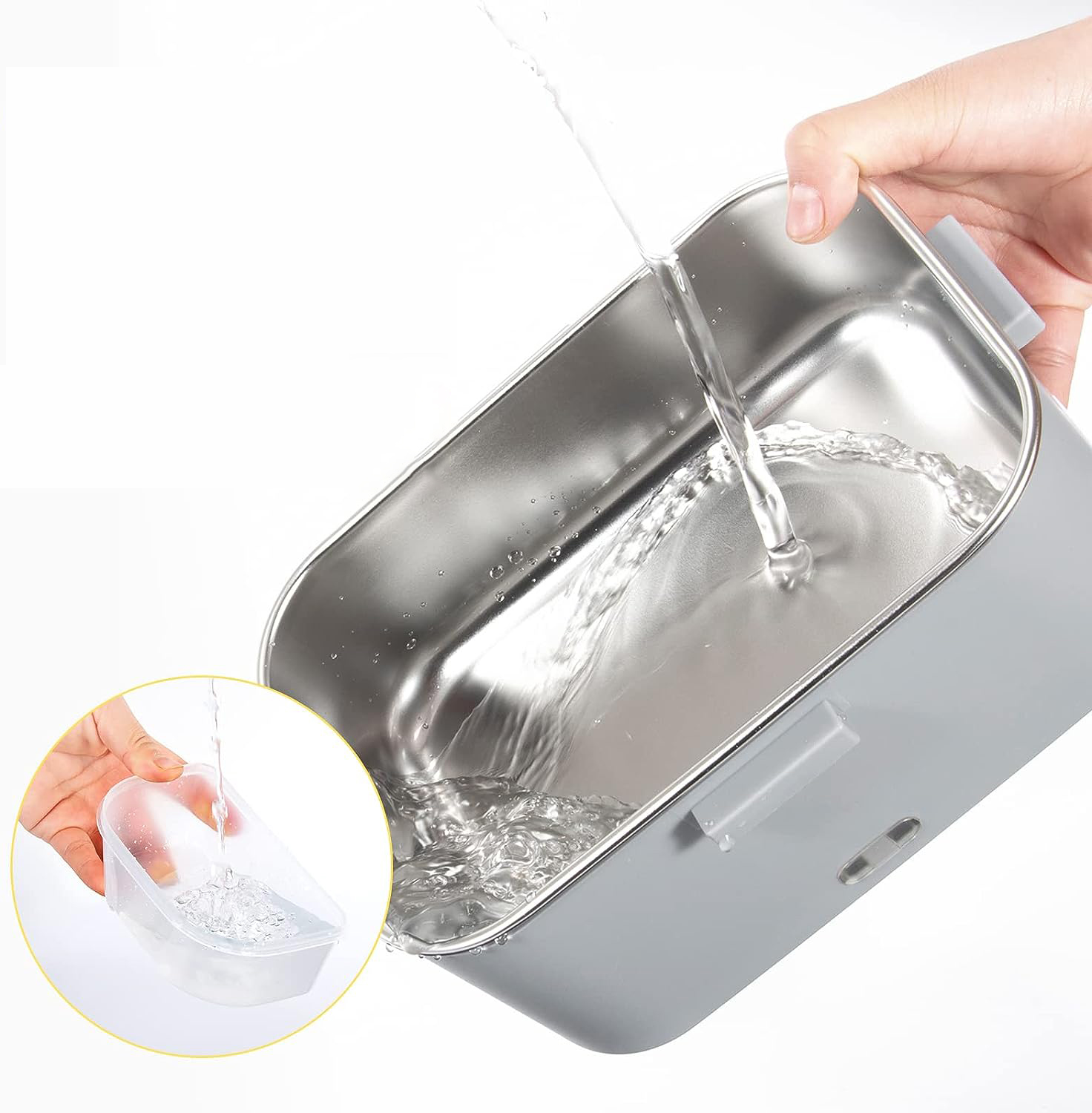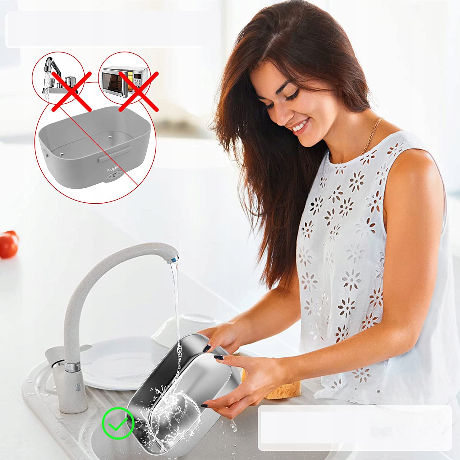 🍛【 два отсека и простые в очистке 】 Электрическая коробка для ланча включает в себя съемный контейнер из нержавеющей стали 304 с объемом 1,5 л, что облегчает очистку, и еще один пластиковый контейнер o емкость o 0,4 литра с крышкой в чемодане, удобно при переносе других продуктов питания. У него также есть камера, в которой вы можете разместить ложку и вилку из нержавеющей стали. Размер - Этот изолированный контейнер для отопления позволяет нагревать еду в любом месте и времени, идеальный подарок для каждого члена семьи