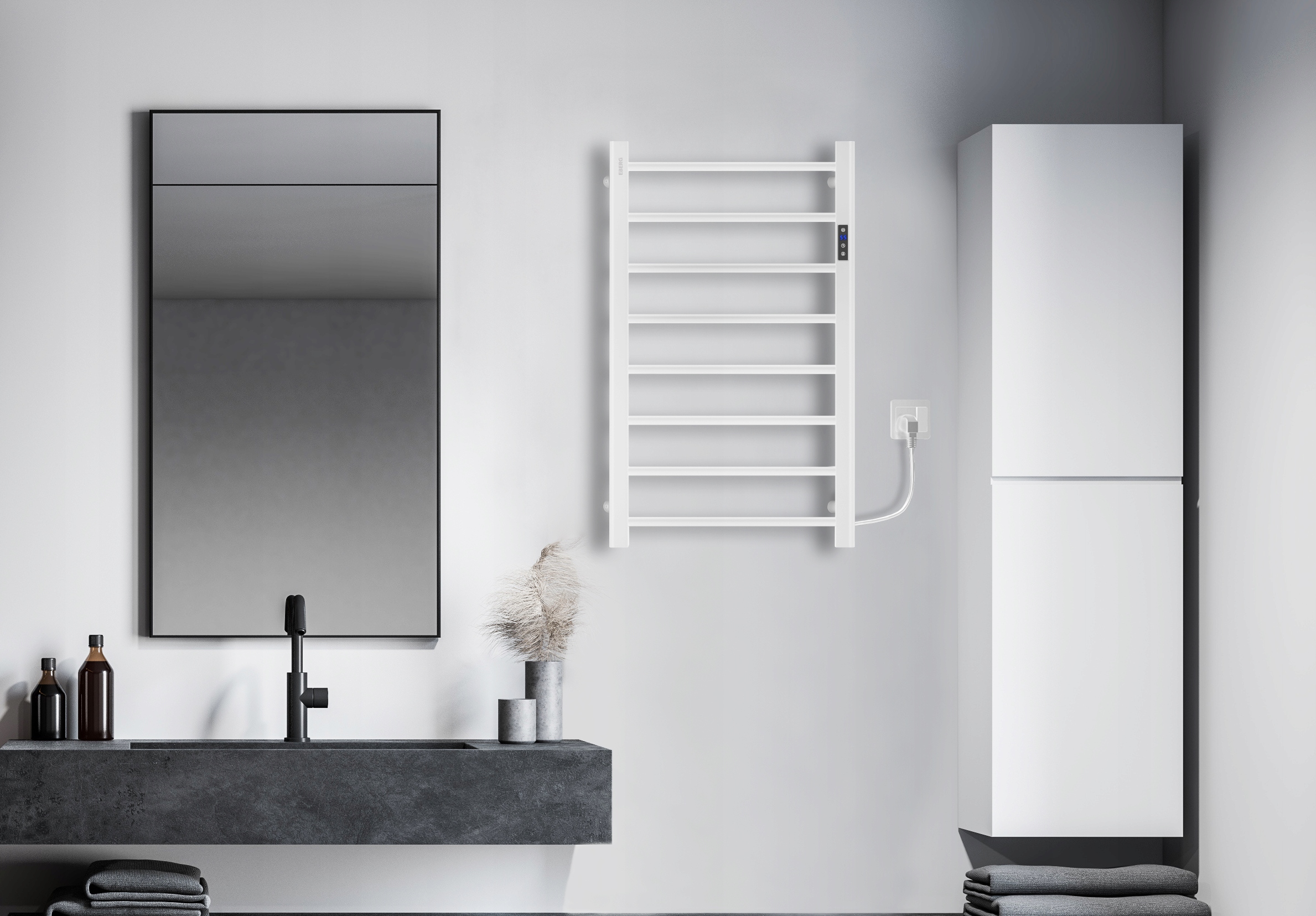 Устройство оснащено таймером, который позволяет запрограммировать время выключения устройства в диапазоне 1-8 часов. Благодаря такому решению радиатор оптимально высушит полотенца или белье.