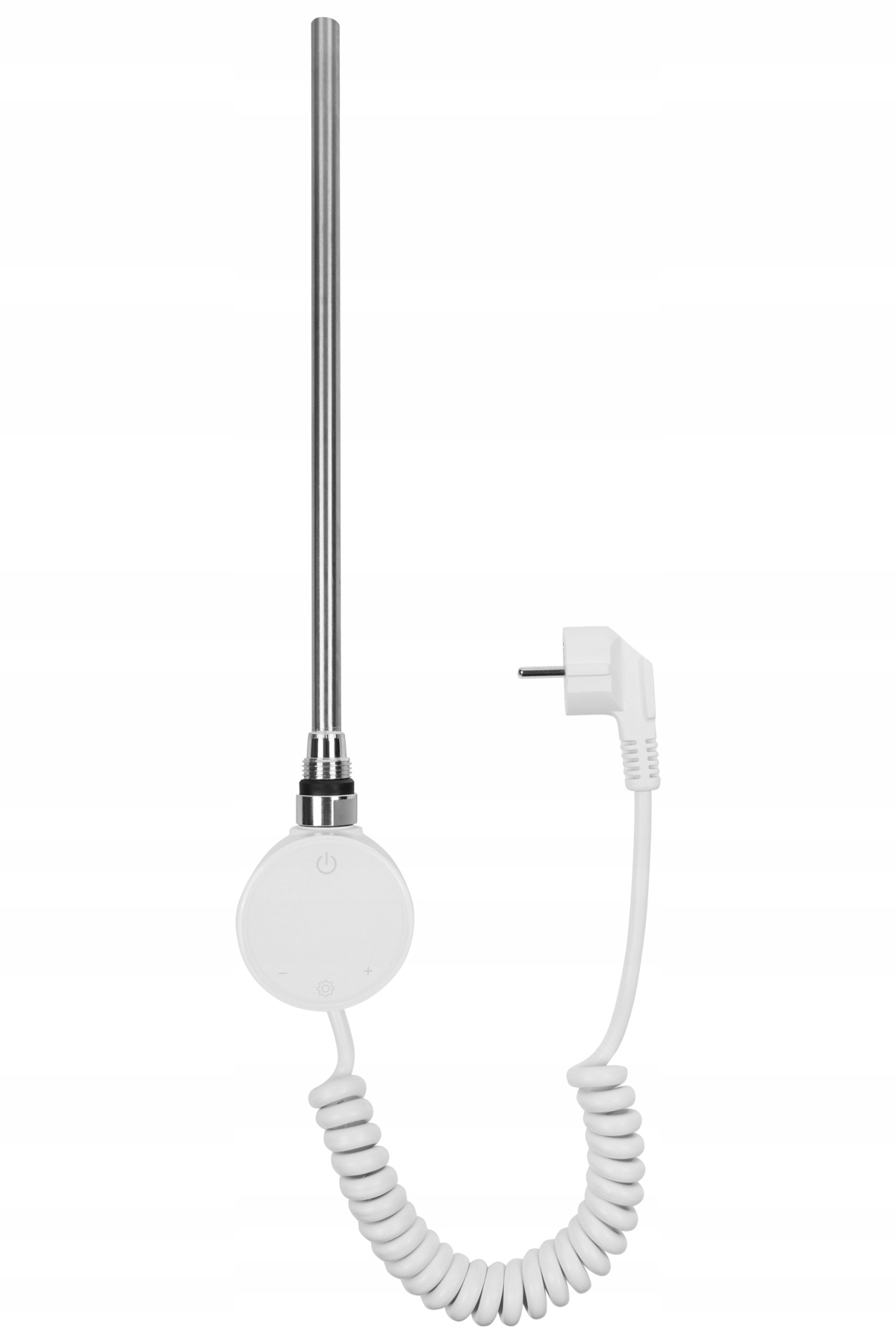Электрический нагреватель со спиральным кабелем и вилкой. Дополнительные аксессуары, видимые на фотографиях, например тройники, клапаны, радиаторы, не продаются вместе с обогревателем и служат лишь для демонстрации возможных способов установки.