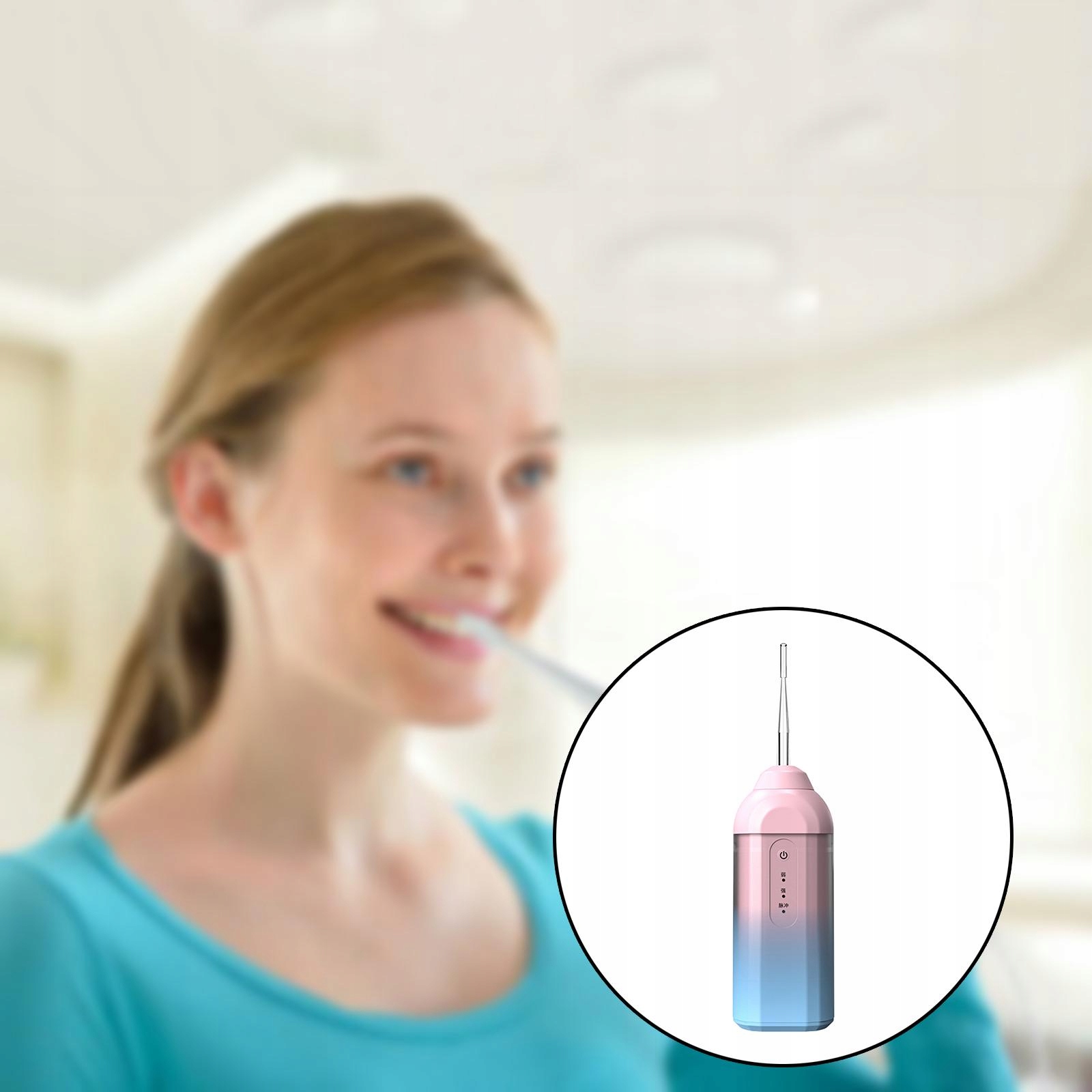 Оральный ирригатор с аккумулятором, глубоко очищающим, телескопическим, 200 мл, чистящим средством, синим, розовым, 1 головкой