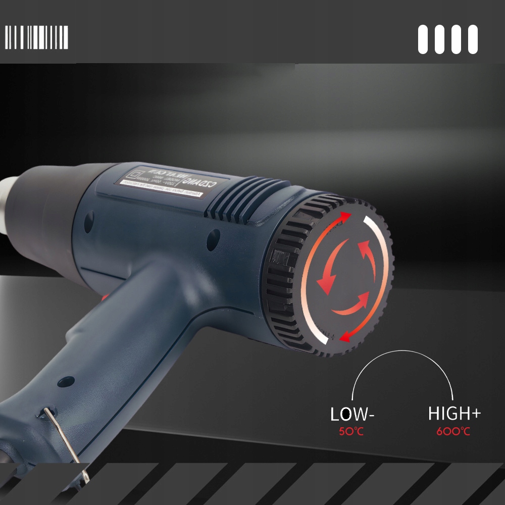 Наши пистолеты с горячим воздухом предлагают переменную контроль температуры. Черная ручка обеспечивается повторным нагревом, а высокий/низкий переключатель на ручке обеспечивает управление потоком воздуха.