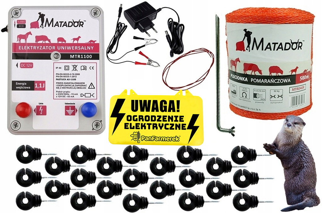 👉 Максимальная эффективность работы - универсальный электрификатор Matador® MTR1100, соответствующая проводимость оплетки и прочные польские изоляторы обеспечивают определенную защиту от выдр.